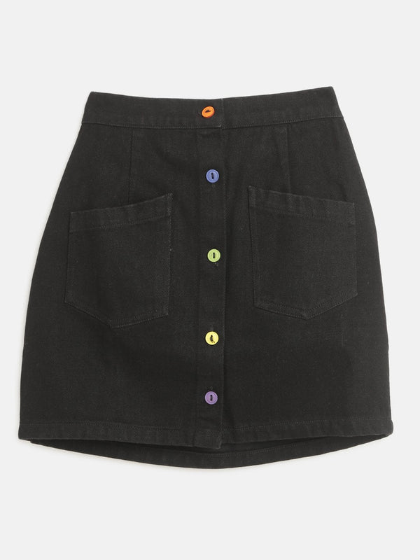 Girls Black Acid Wash Side Pintuck Cargo Jeans