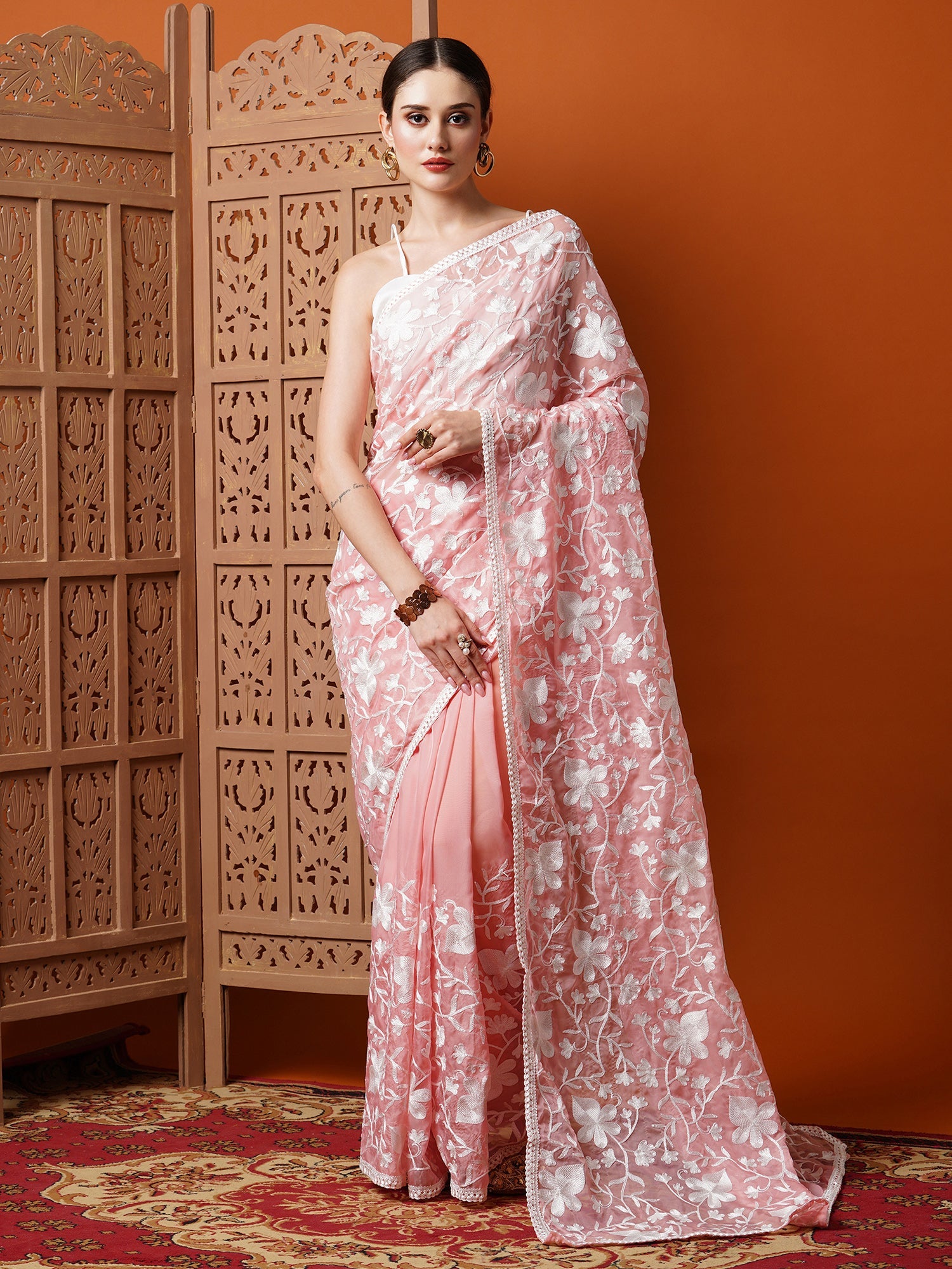 This saree is made from Organza and is Pink in color. Our Ethnic Sarees comes With Blouse Piece, Which can be Stitched according to Your Taste and Preference. This Saree is Crafted by Skill Craftsmen without Compromising on its Quality. With This Beautiful Design and Fabric, This Saree will fetch You Oodles of Compliments and Praise. saree fit size is 5.5 mtr saree & 0.8 mtr blouse, Free Size |.