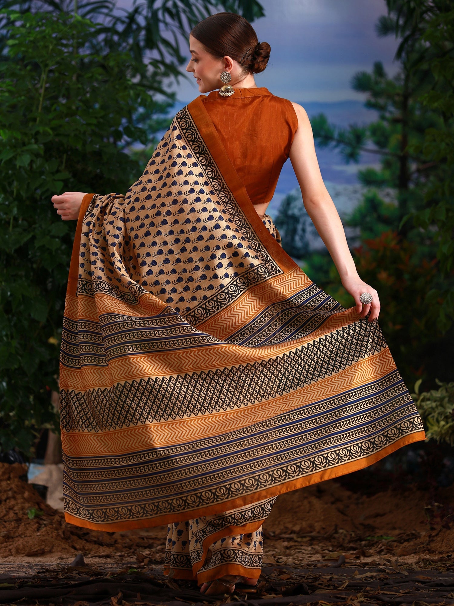 This saree is made from Bhagalpuri Silk and is Cream in color. Our Ethnic Sarees comes With Blouse Piece, Which can be Stitched according to Your Taste and Preference. This Saree is Crafted by Skill Craftsmen without Compromising on its Quality. With This Beautiful Design and Fabric, This Saree will fetch You Oodles of Compliments and Praise. saree fit size is 5.5 mtr saree & 0.8 mtr blouse, Free Size |.