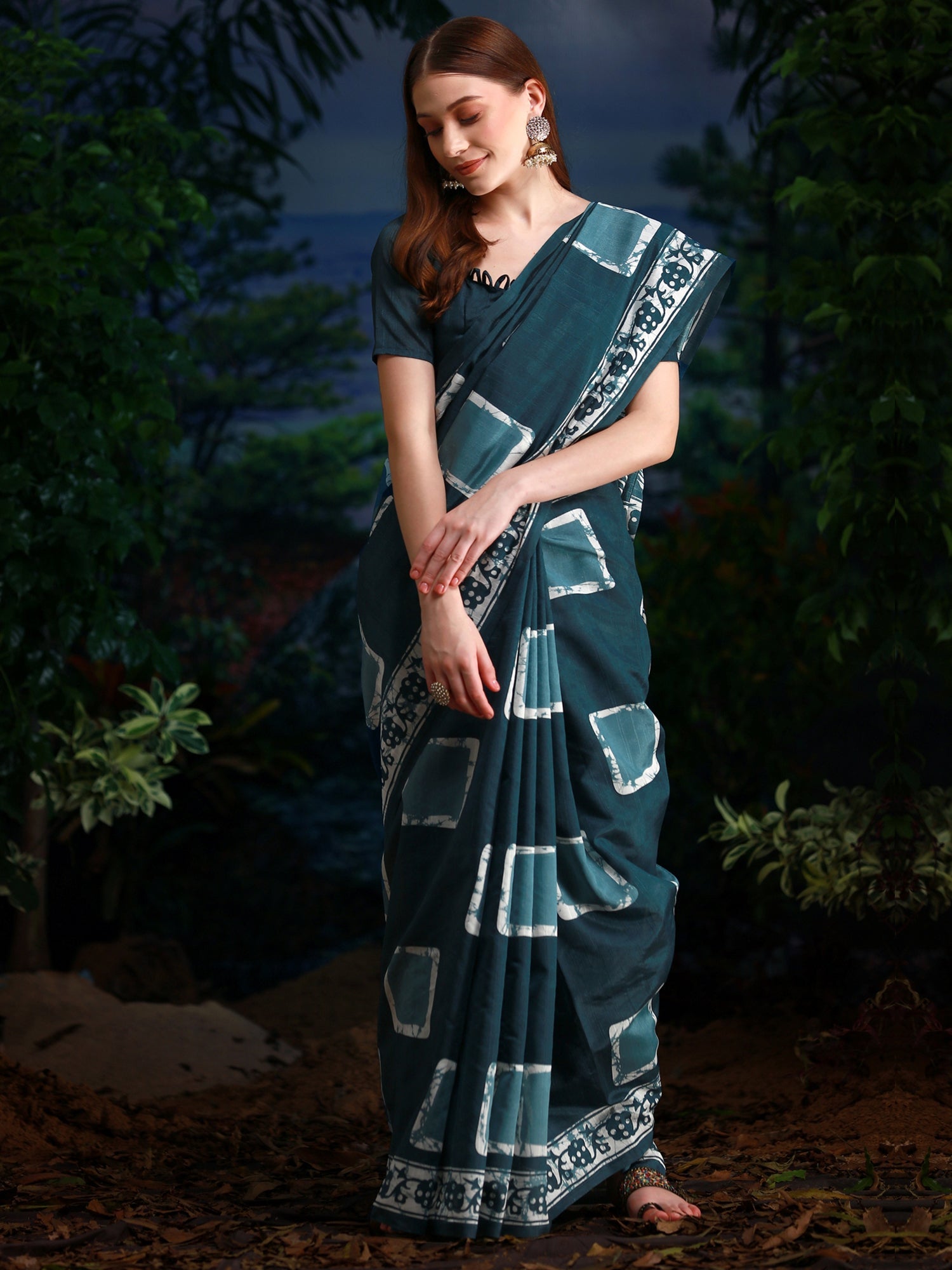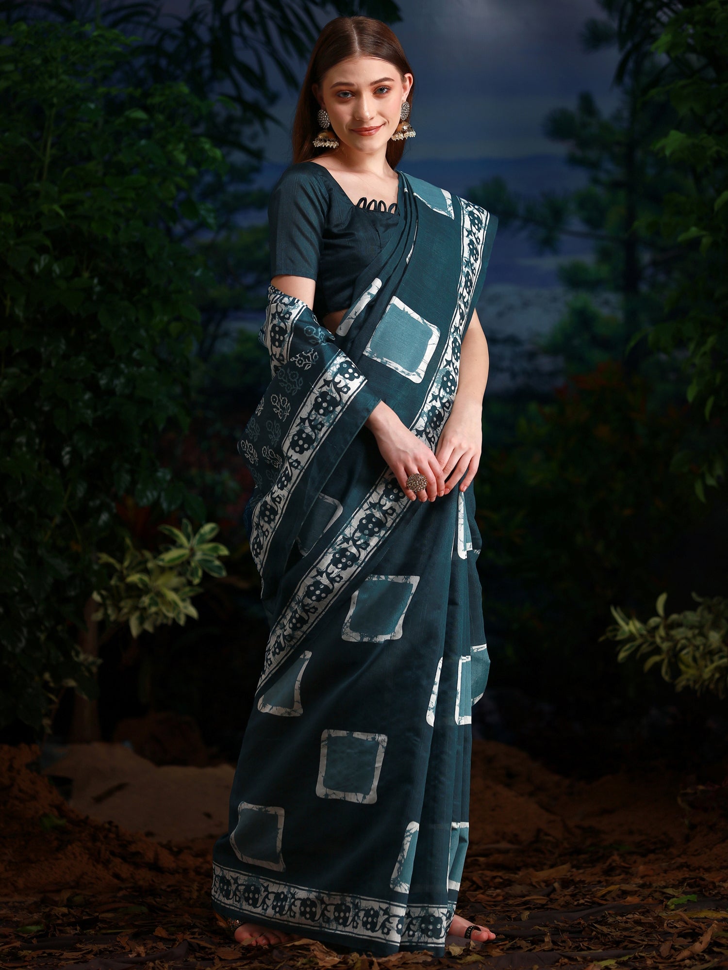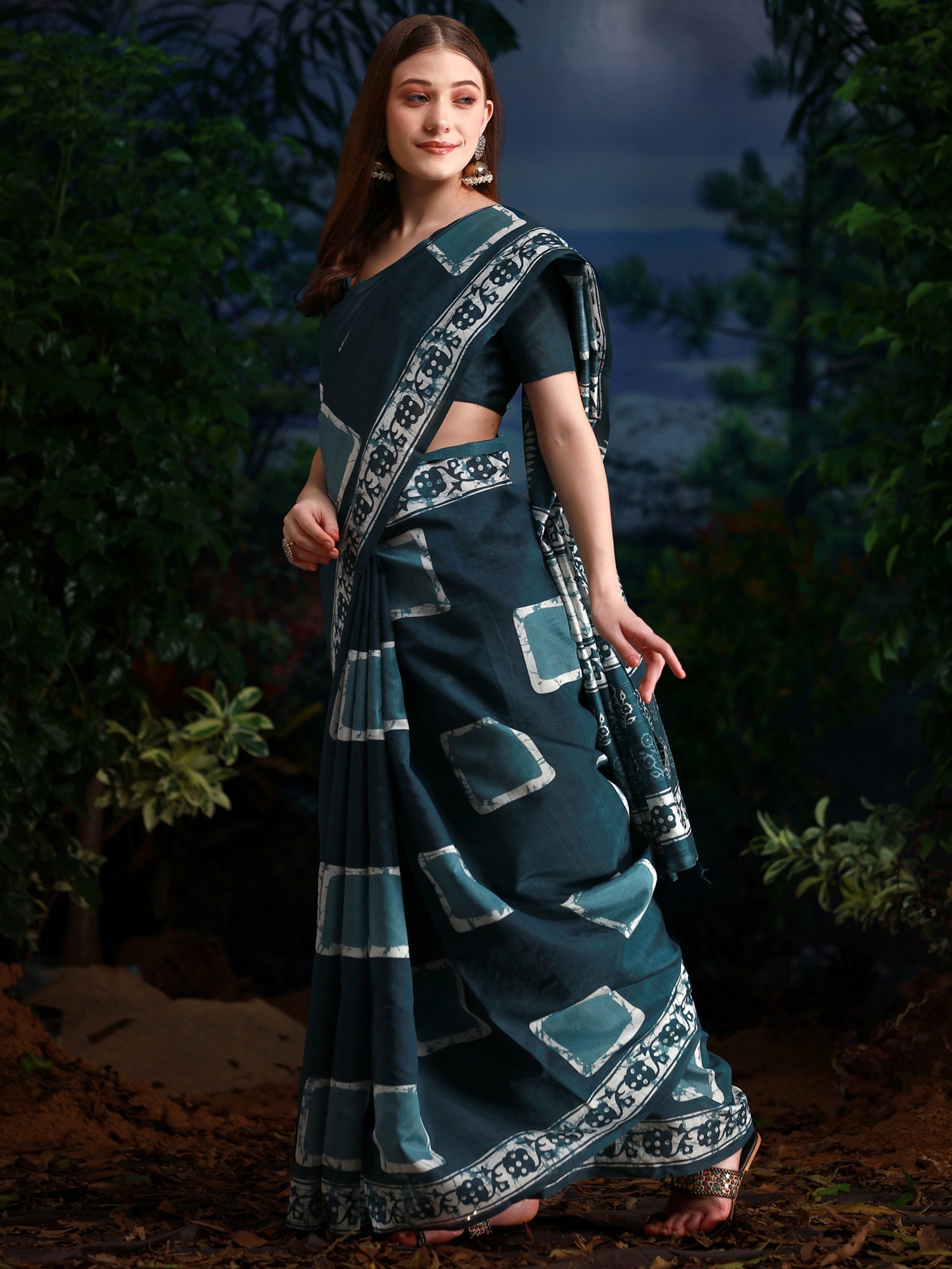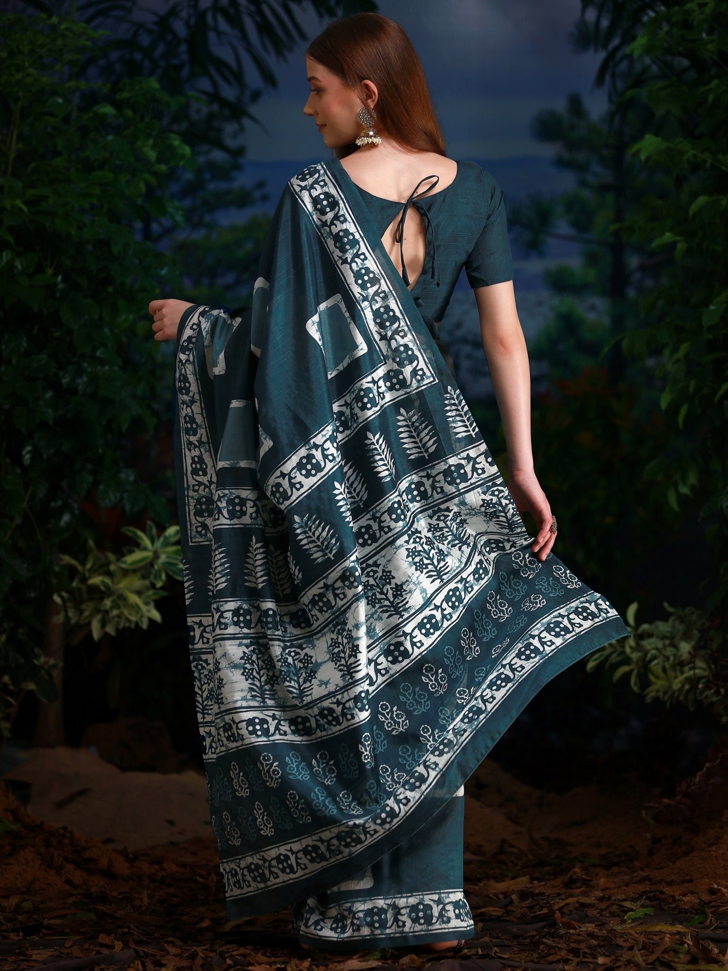 This saree is made from Bhagalpuri Silk and is Teal blue in color. Our Ethnic Sarees comes With Blouse Piece, Which can be Stitched according to Your Taste and Preference. This Saree is Crafted by Skill Craftsmen without Compromising on its Quality. With This Beautiful Design and Fabric, This Saree will fetch You Oodles of Compliments and Praise. saree fit size is 5.5 mtr saree & 0.8 mtr blouse, Free Size |.