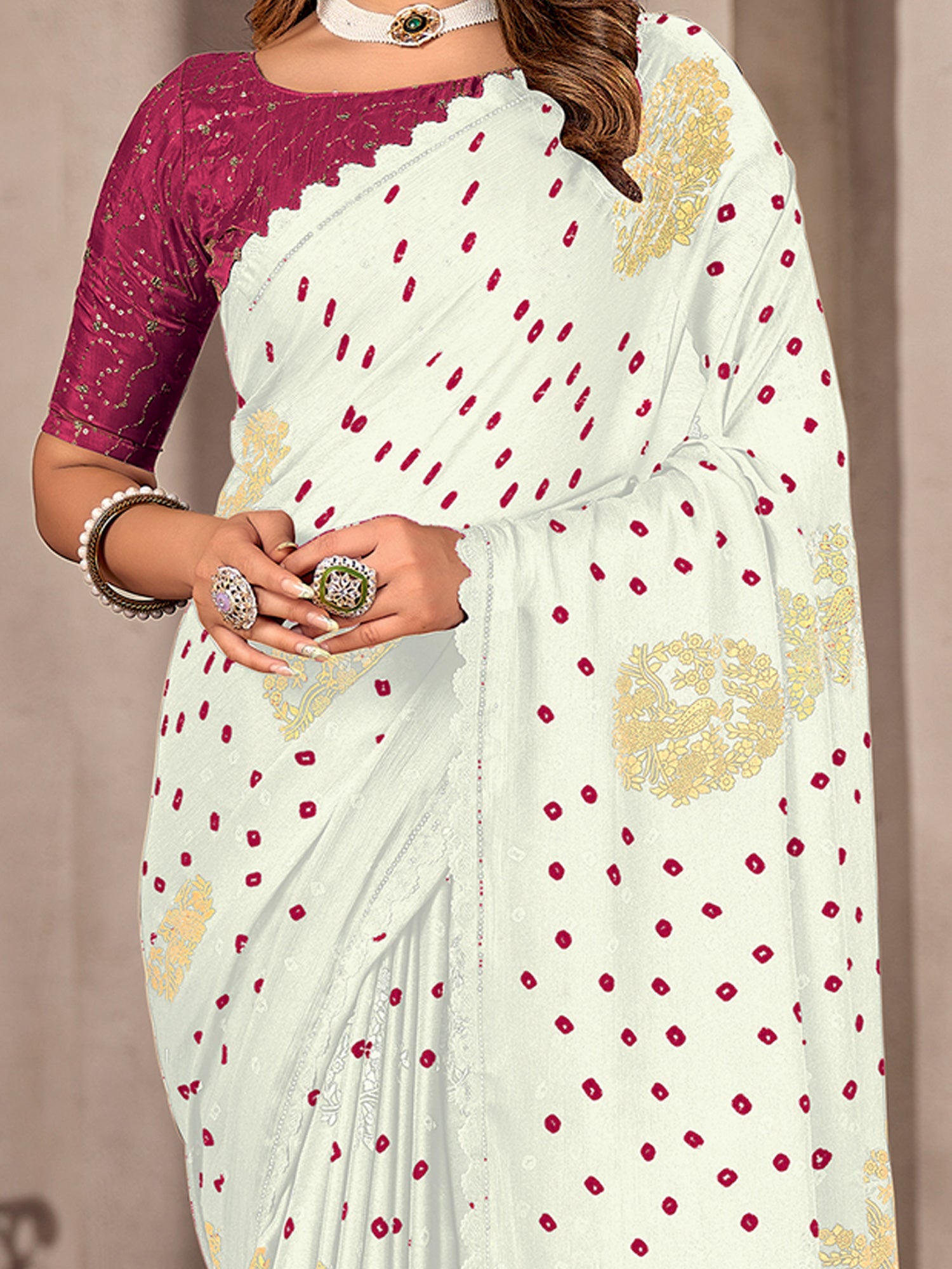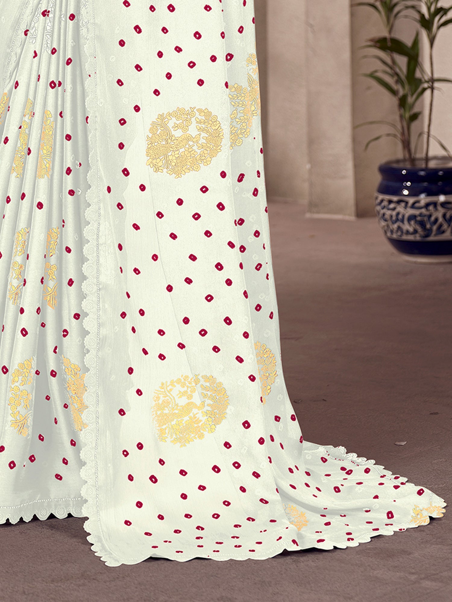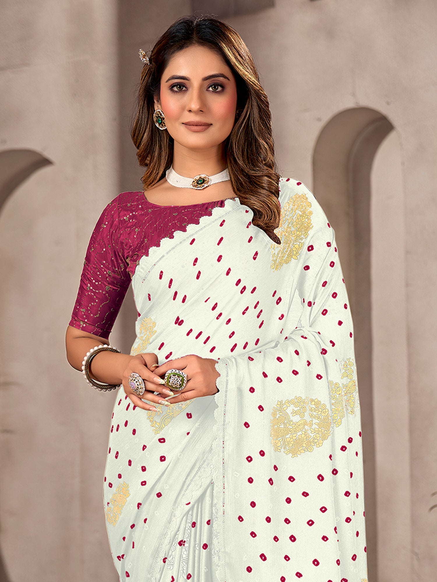 This saree is made from Chiffon and is White in color. Our Ethnic Sarees comes With Blouse Piece, Which can be Stitched according to Your Taste and Preference. This Saree is Crafted by Skill Craftsmen without Compromising on its Quality. With This Beautiful Design and Fabric, This Saree will fetch You Oodles of Compliments and Praise. saree fit size is 5.5 mtr saree & 0.8 mtr blouse, Free Size |.