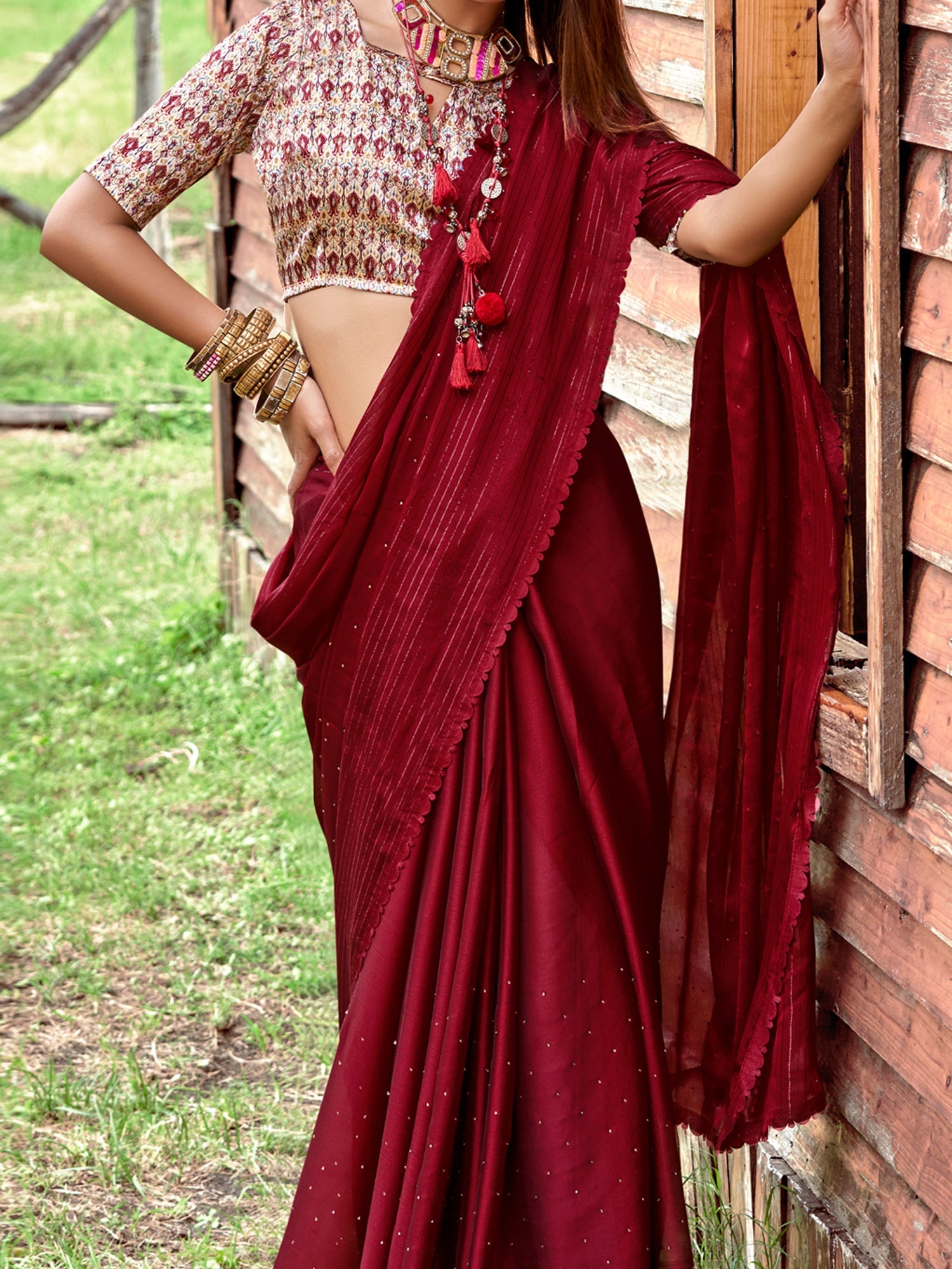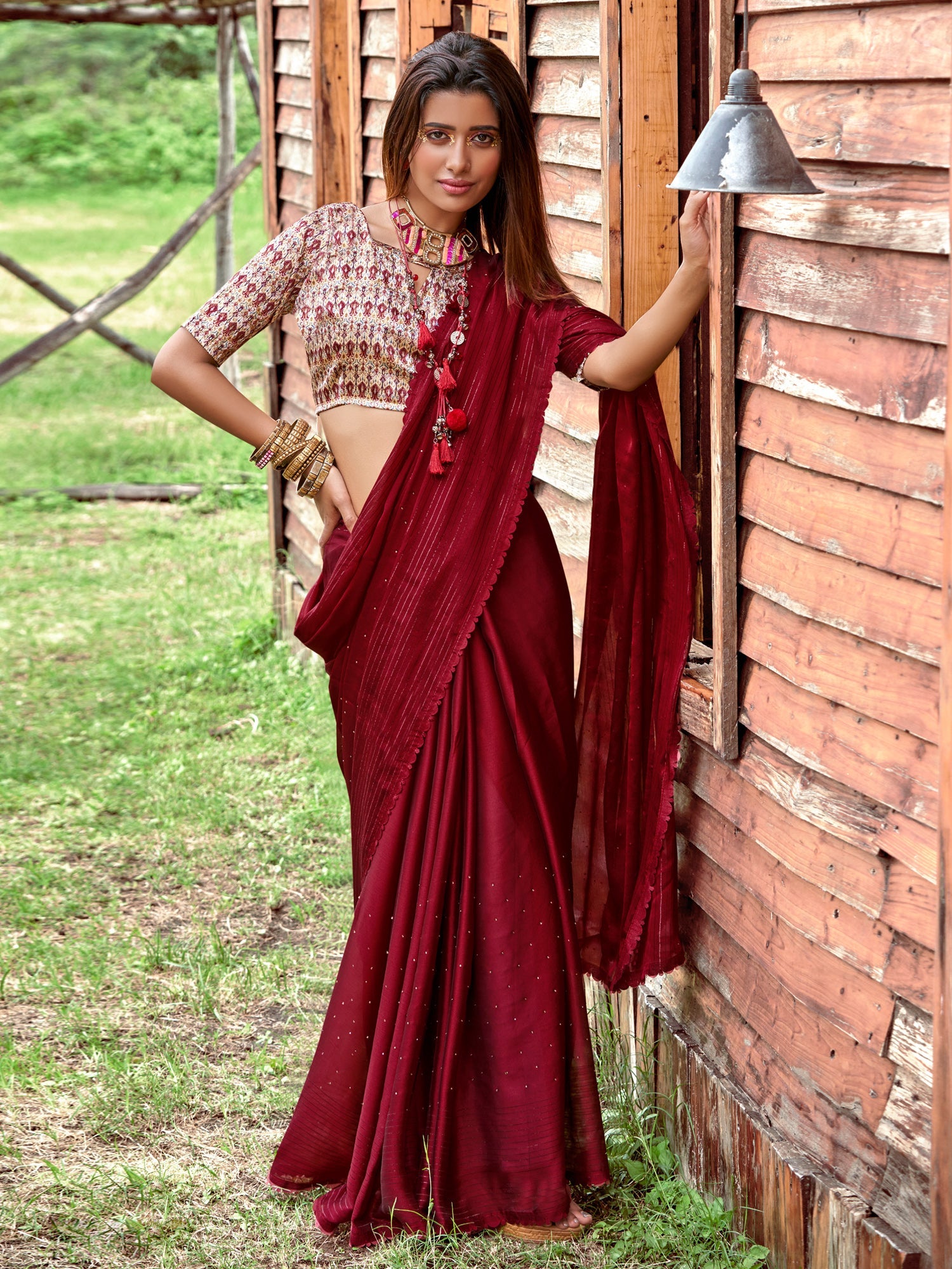 This saree is made from Chiffon and is Magenta in color. Our Ethnic Sarees comes With Blouse Piece, Which can be Stitched according to Your Taste and Preference. This Saree is Crafted by Skill Craftsmen without Compromising on its Quality. With This Beautiful Design and Fabric, This Saree will fetch You Oodles of Compliments and Praise. saree fit size is 5.5 mtr saree & 0.8 mtr blouse, Free Size |.