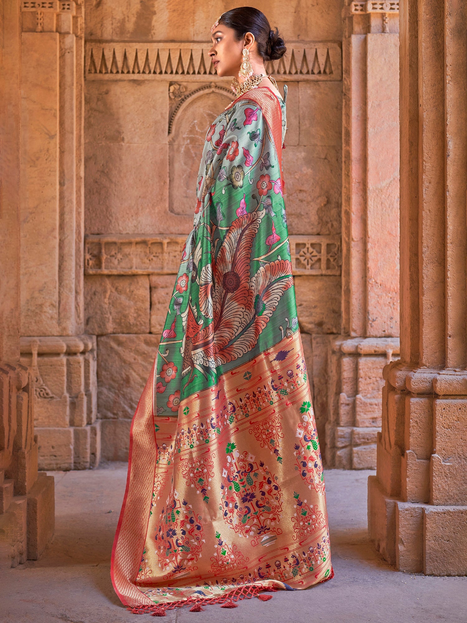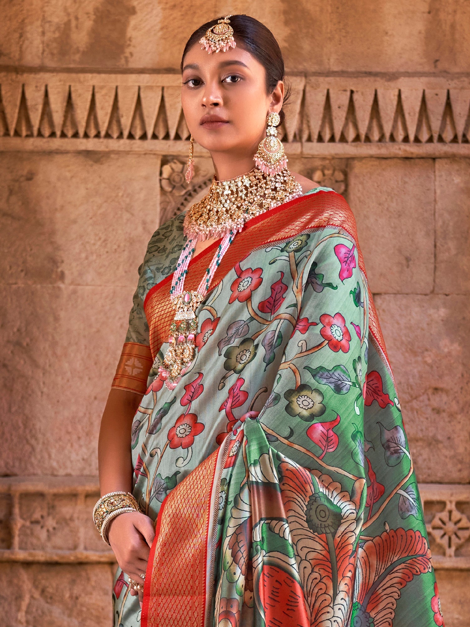 This saree is made from Silk Blend and is Light Green in color. Our Ethnic Sarees comes With Blouse Piece, Which can be Stitched according to Your Taste and Preference. This Saree is Crafted by Skill Craftsmen without Compromising on its Quality. With This Beautiful Design and Fabric, This Saree will fetch You Oodles of Compliments and Praise. saree fit size is 5.5 mtr saree & 0.8 mtr blouse, Free Size |.