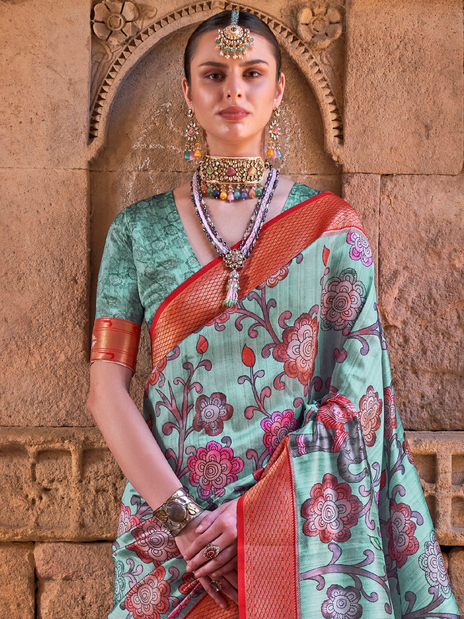 This saree is made from Silk Blend and is Turquoise in color. Our Ethnic Sarees comes With Blouse Piece, Which can be Stitched according to Your Taste and Preference. This Saree is Crafted by Skill Craftsmen without Compromising on its Quality. With This Beautiful Design and Fabric, This Saree will fetch You Oodles of Compliments and Praise. saree fit size is 5.5 mtr saree & 0.8 mtr blouse, Free Size |.