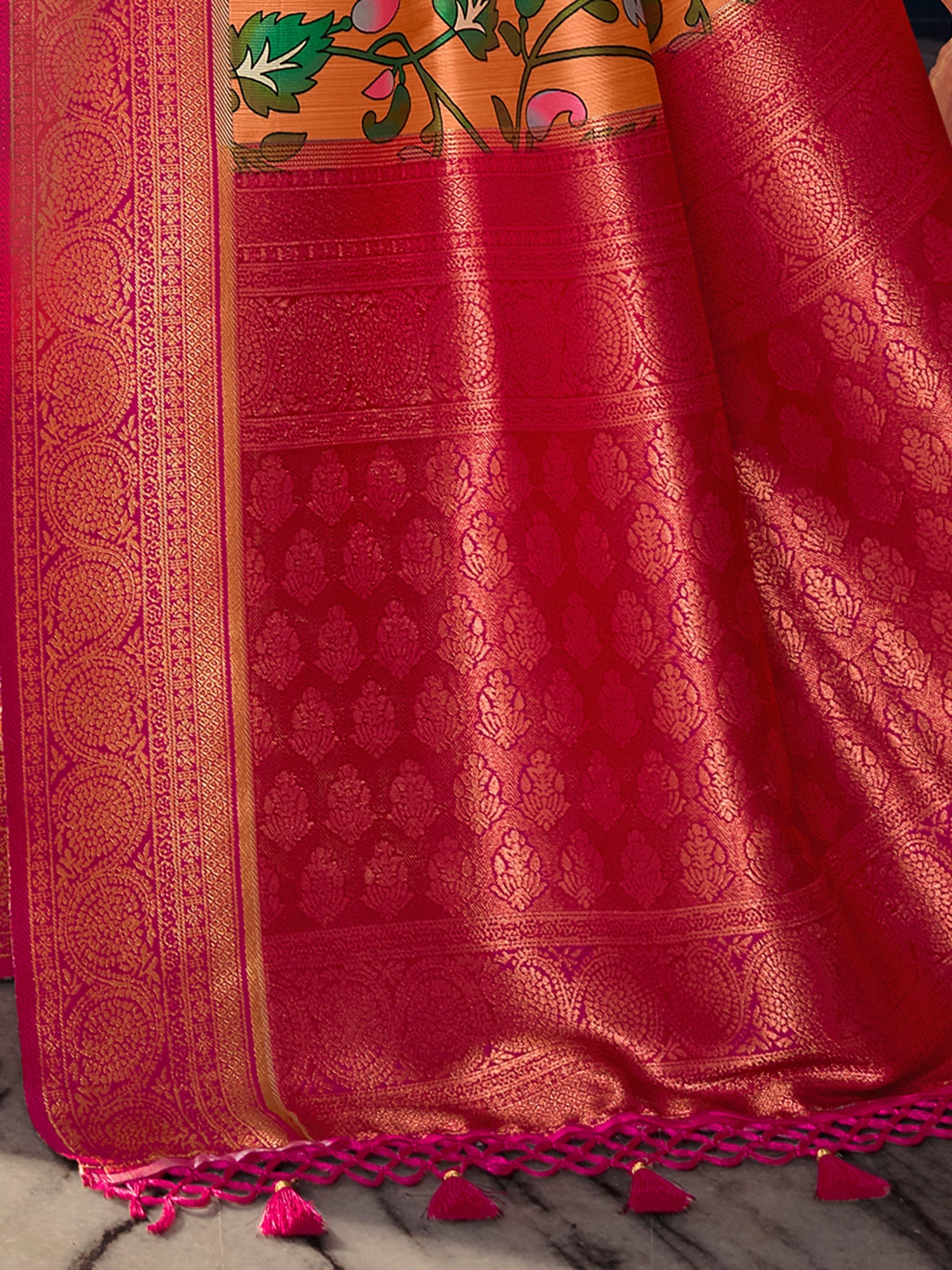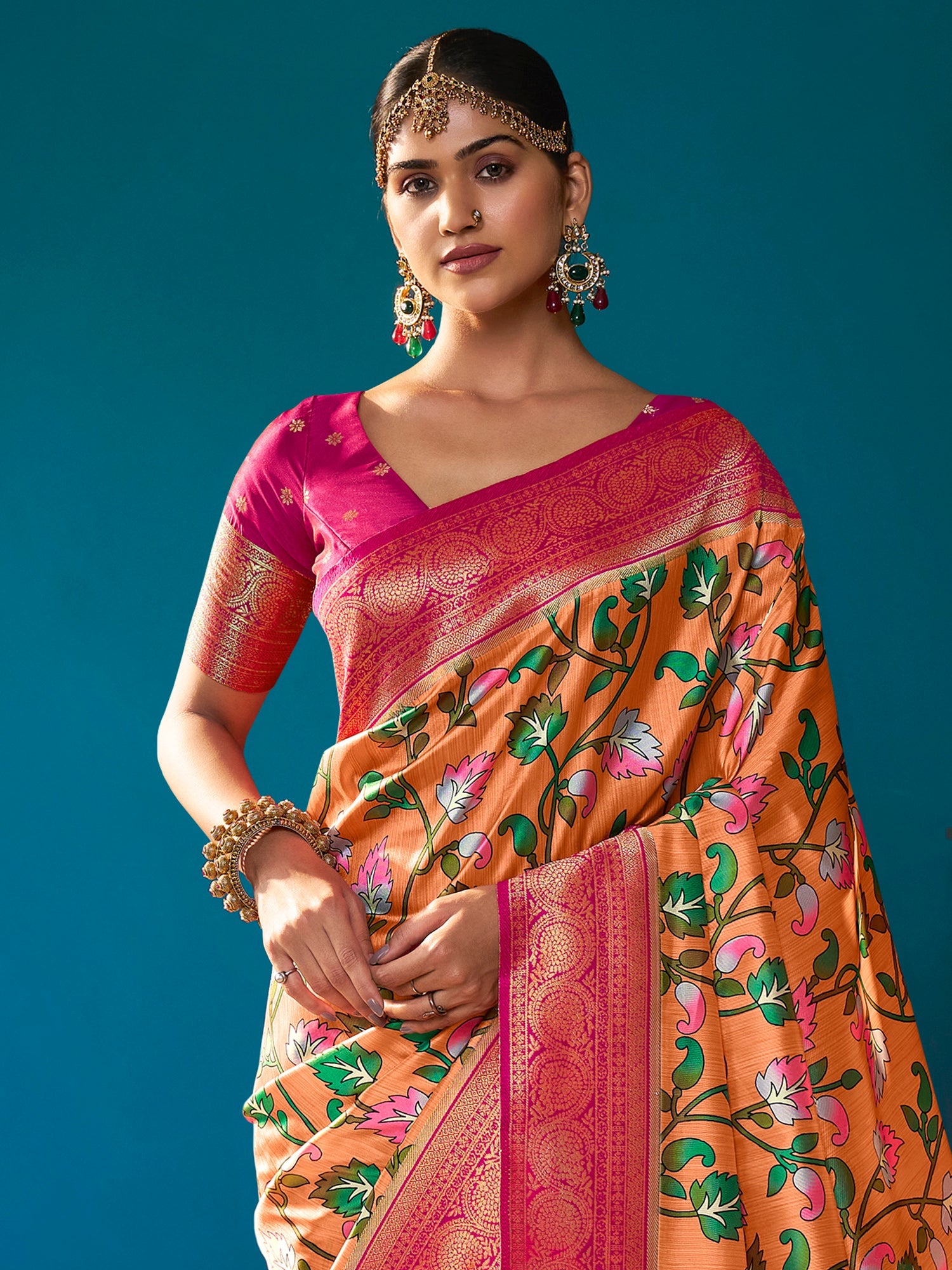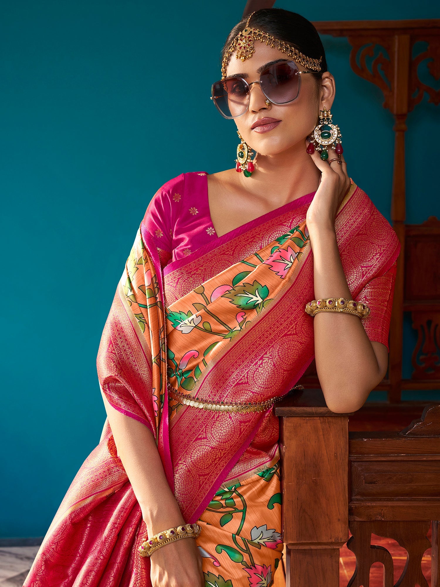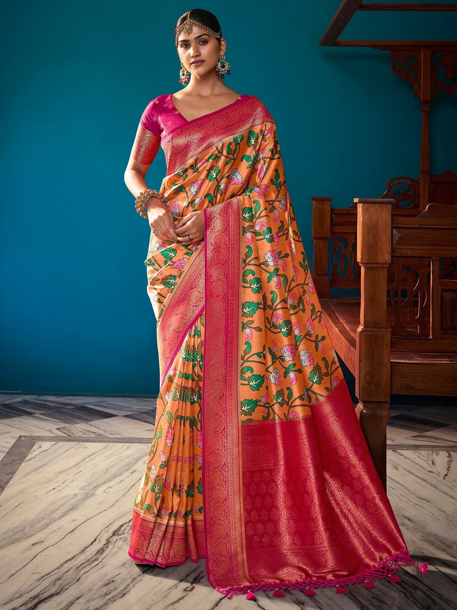 This saree is made from Satin Silk and is Orange in color. Our Ethnic Sarees comes With Blouse Piece, Which can be Stitched according to Your Taste and Preference. This Saree is Crafted by Skill Craftsmen without Compromising on its Quality. With This Beautiful Design and Fabric, This Saree will fetch You Oodles of Compliments and Praise. saree fit size is 5.5 mtr saree & 0.8 mtr blouse, Free Size |.