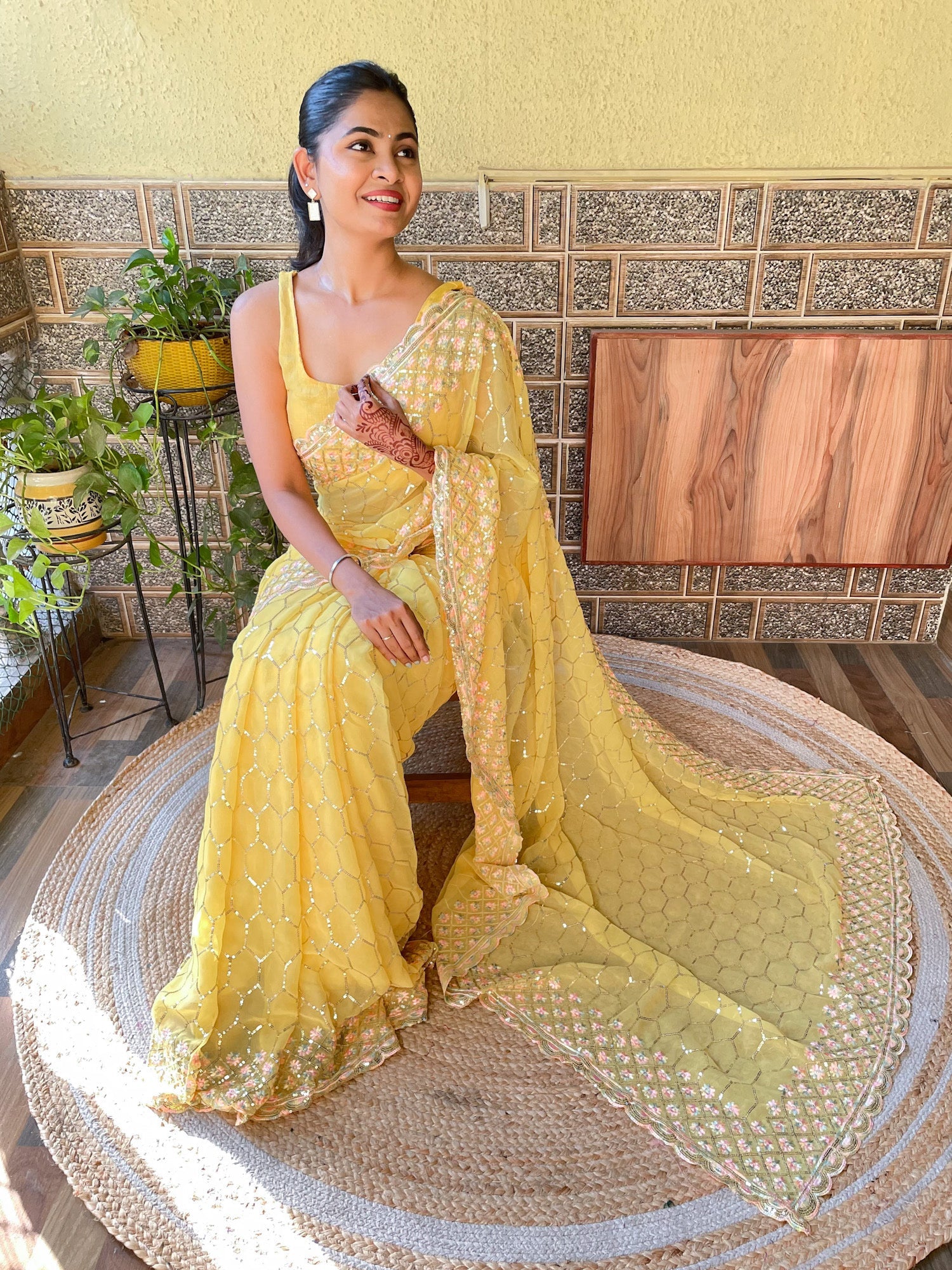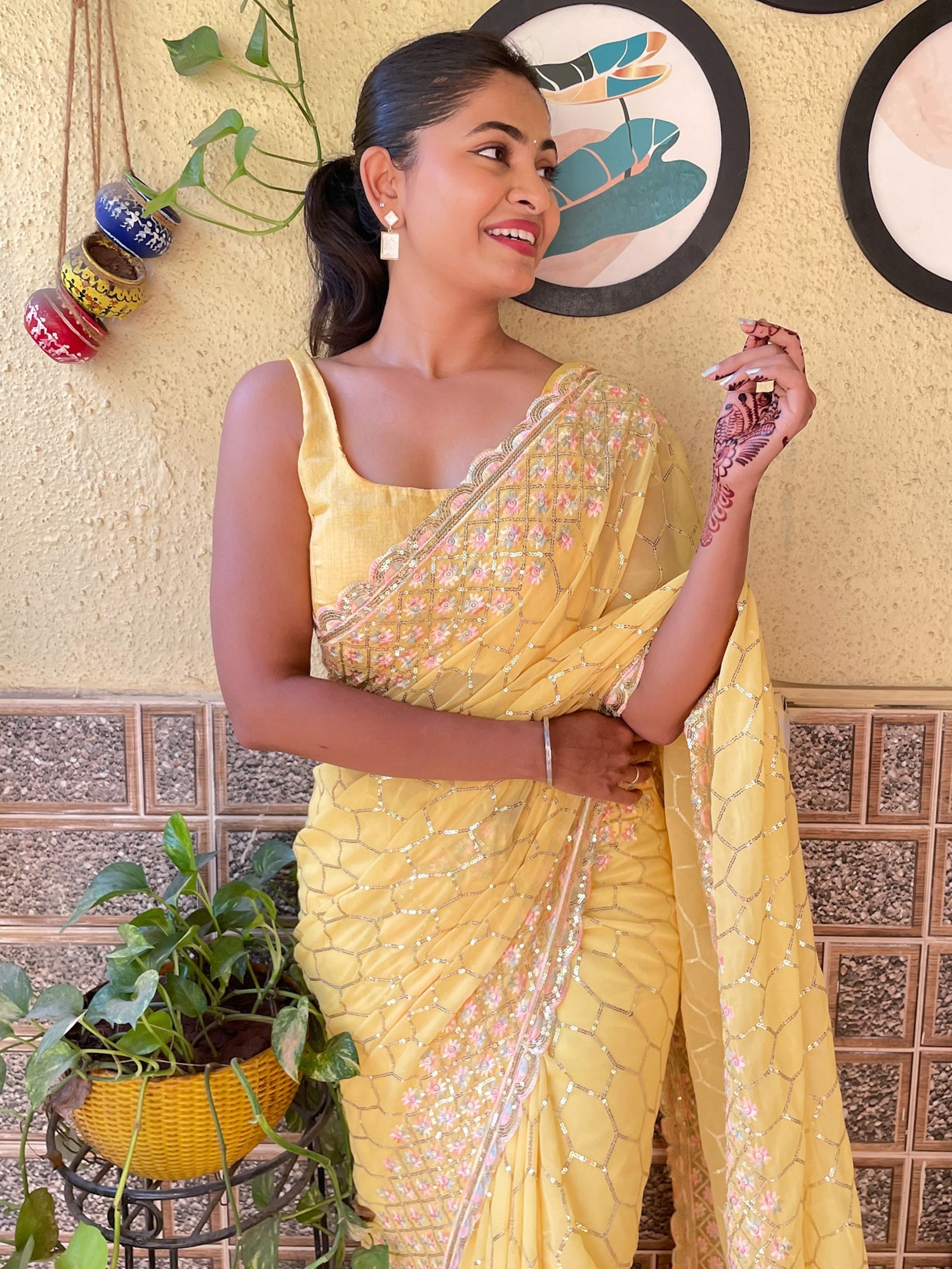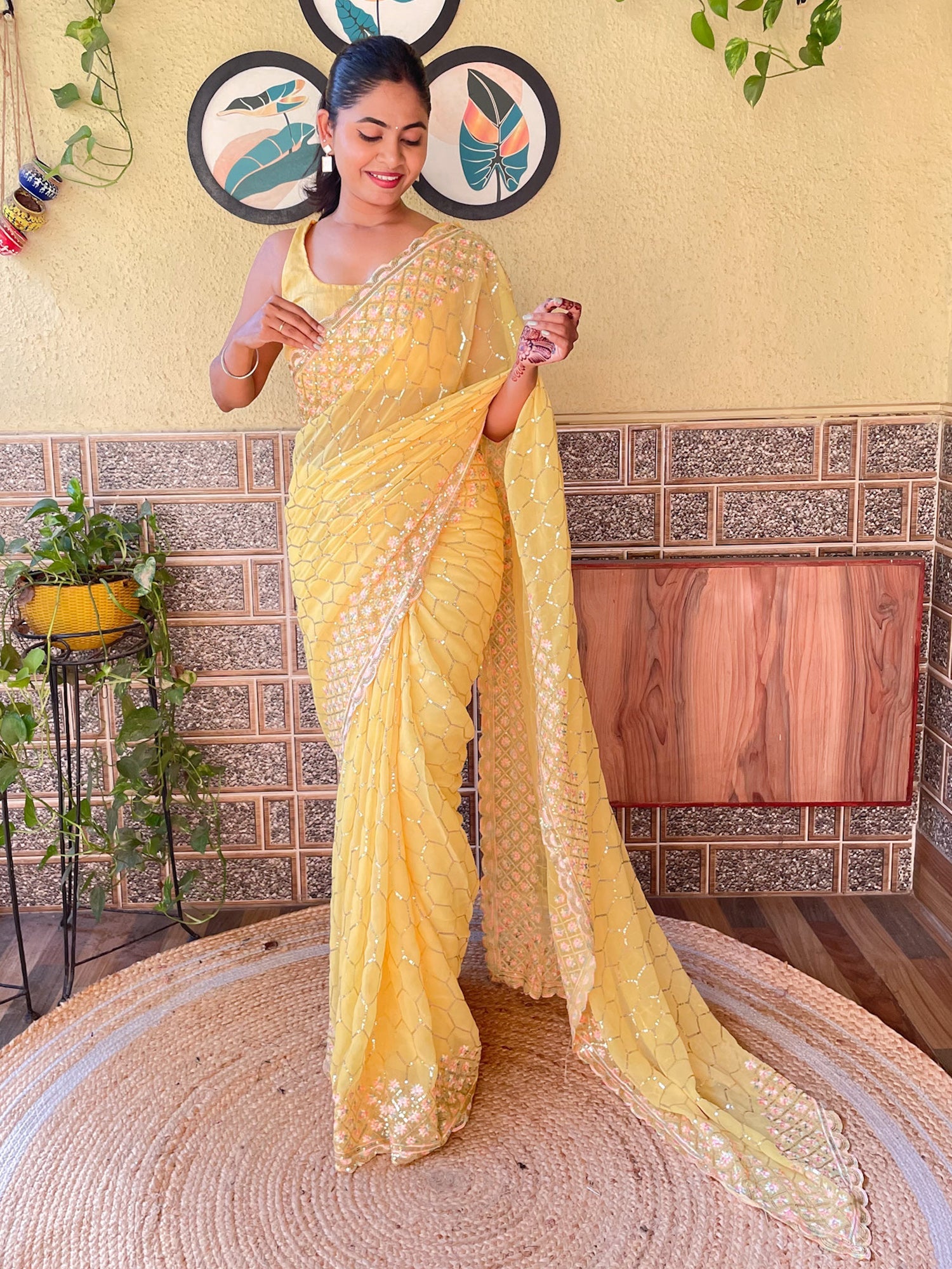 This saree is made from Georgette and is Yellow in color. Our Ethnic Sarees comes With Blouse Piece, Which can be Stitched according to Your Taste and Preference. This Saree is Crafted by Skill Craftsmen without Compromising on its Quality. With This Beautiful Design and Fabric, This Saree will fetch You Oodles of Compliments and Praise. saree fit size is 5.5 mtr saree & 0.8 mtr blouse, Free Size |.