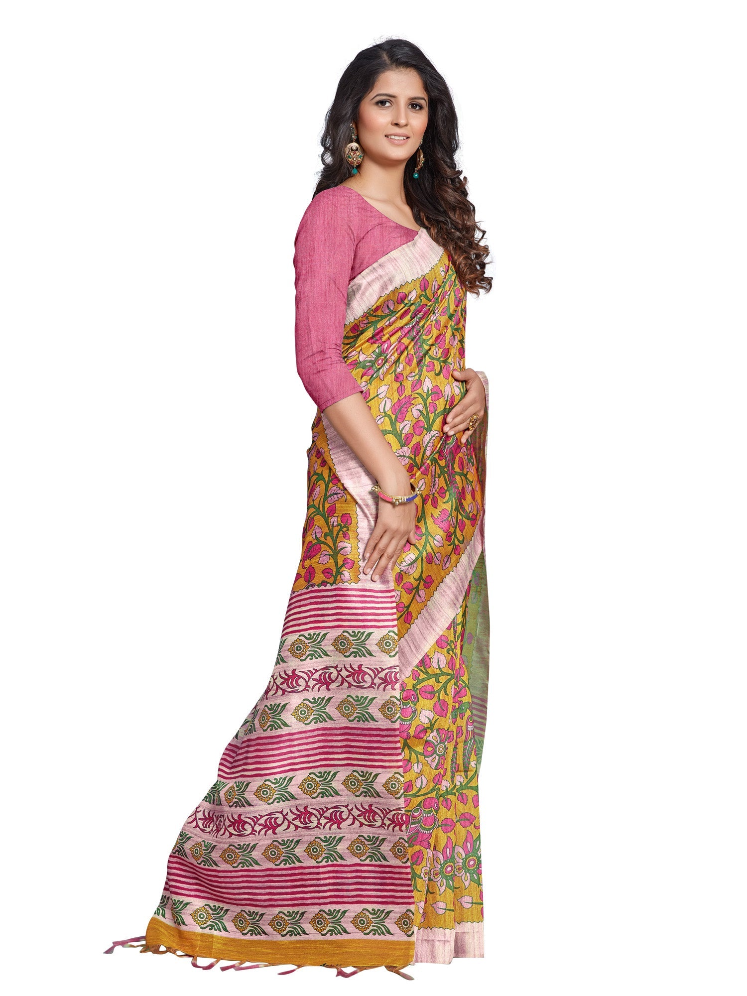 This saree is made from Manipuri Silk and is Yellow in color. Our Ethnic Sarees comes With Blouse Piece, Which can be Stitched according to Your Taste and Preference. This Saree is Crafted by Skill Craftsmen without Compromising on its Quality. With This Beautiful Design and Fabric, This Saree will fetch You Oodles of Compliments and Praise. saree fit size is 5.5 mtr saree & 0.8 mtr blouse, Free Size |.