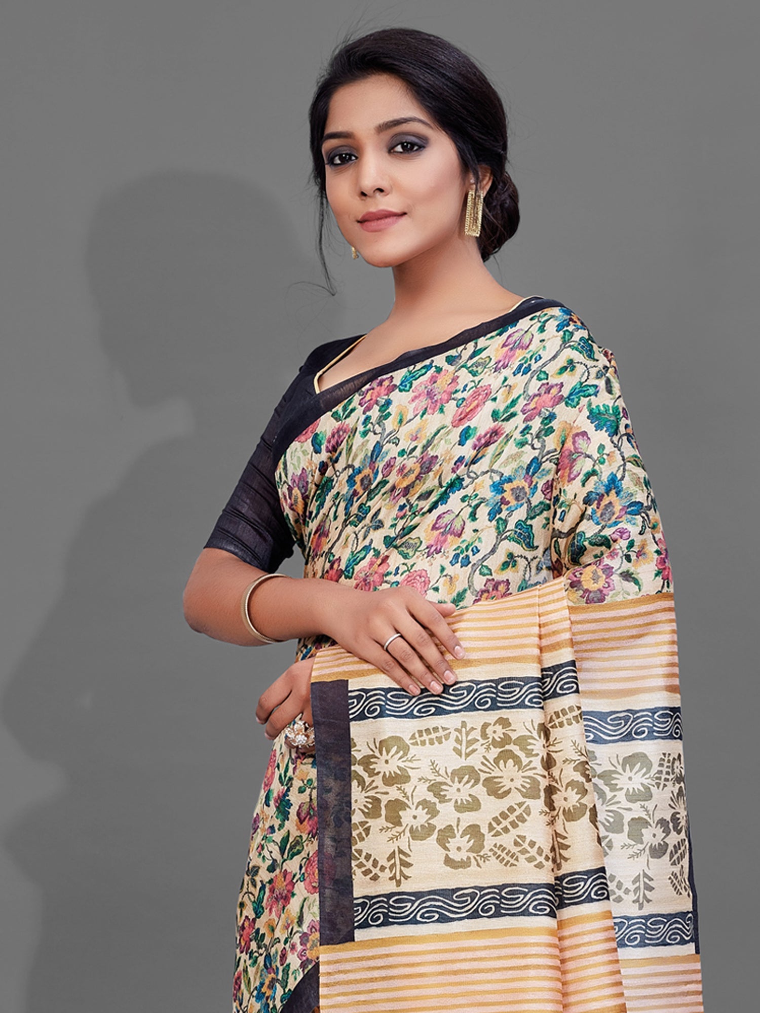 This saree is made from Manipuri Silk and is Cream in color. Our Ethnic Sarees comes With Blouse Piece, Which can be Stitched according to Your Taste and Preference. This Saree is Crafted by Skill Craftsmen without Compromising on its Quality. With This Beautiful Design and Fabric, This Saree will fetch You Oodles of Compliments and Praise. saree fit size is 5.5 mtr saree & 0.8 mtr blouse, Free Size |.