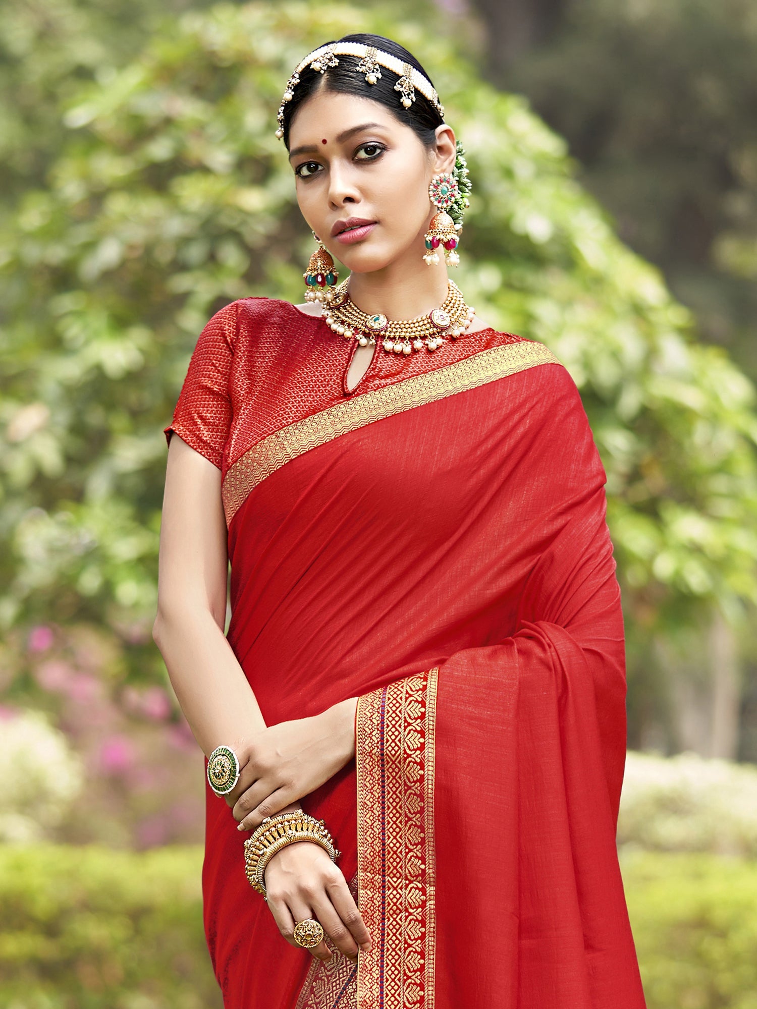 This saree is made from Vichitra Silk and is Red in color. Our Ethnic Sarees comes With Blouse Piece, Which can be Stitched according to Your Taste and Preference. This Saree is Crafted by Skill Craftsmen without Compromising on its Quality. With This Beautiful Design and Fabric, This Saree will fetch You Oodles of Compliments and Praise. saree fit size is 5.5 mtr saree & 0.8 mtr blouse, Free Size |.