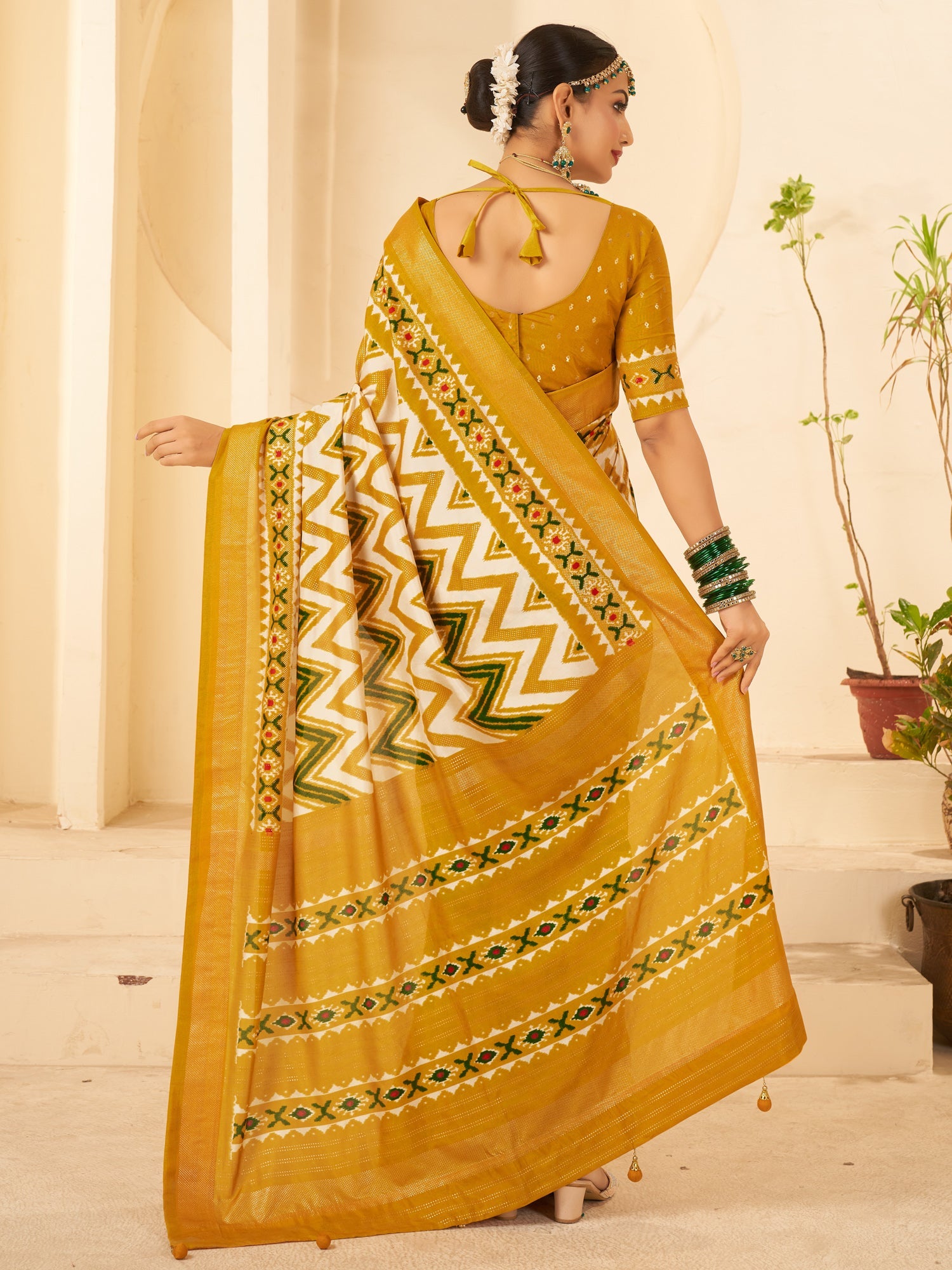 This saree is made from Silk Blend and is Mustard in color. Our Ethnic Sarees comes With Blouse Piece, Which can be Stitched according to Your Taste and Preference. This Saree is Crafted by Skill Craftsmen without Compromising on its Quality. With This Beautiful Design and Fabric, This Saree will fetch You Oodles of Compliments and Praise. saree fit size is 5.5 mtr saree & 0.8 mtr blouse, Free Size |.