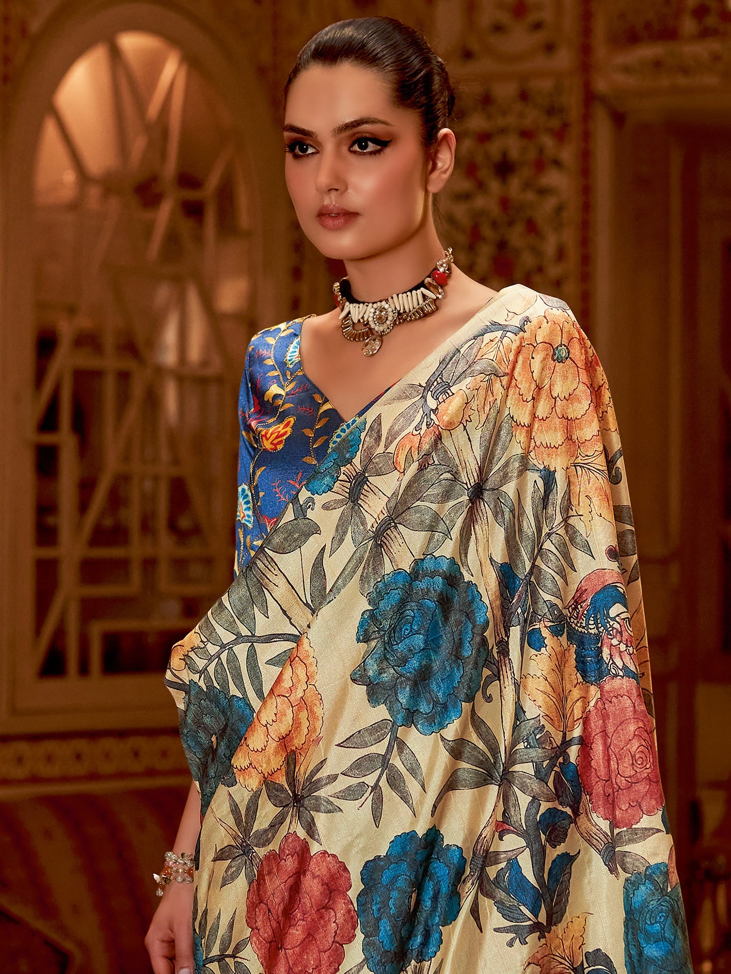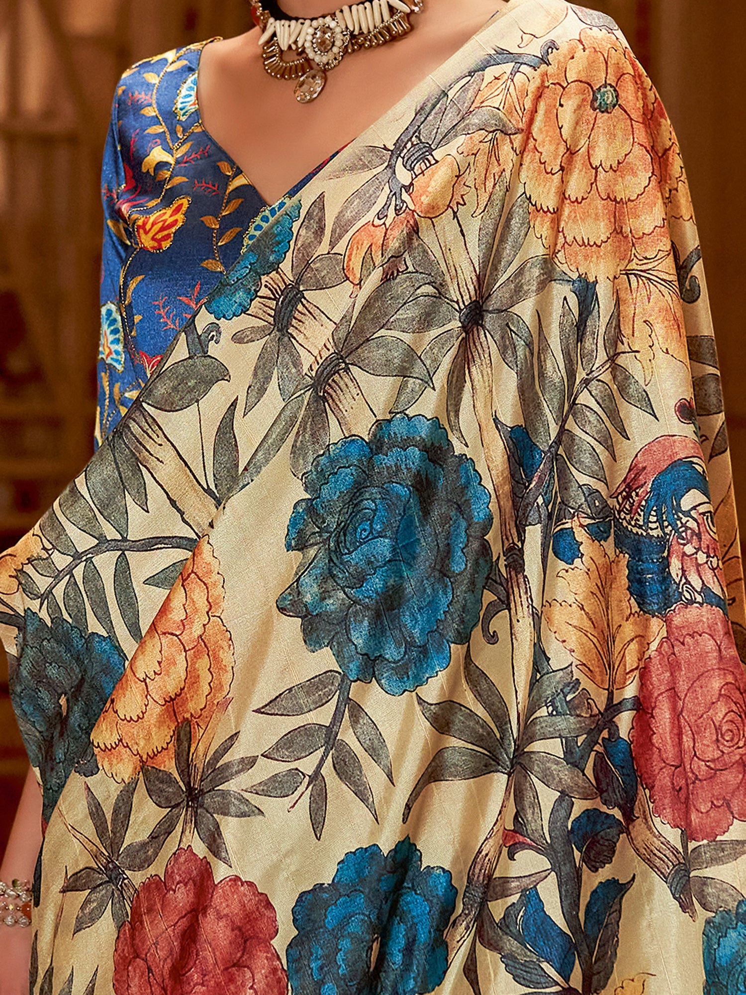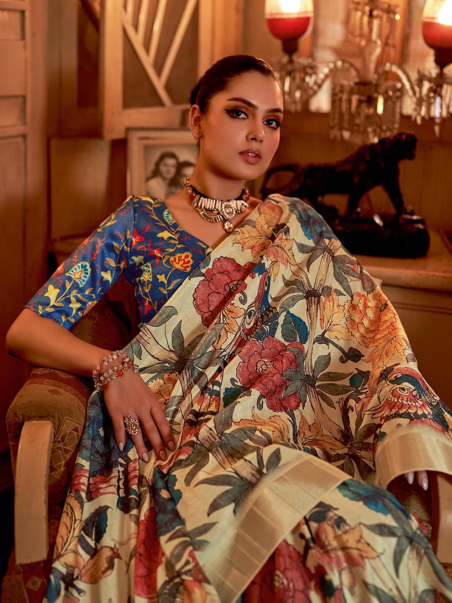 This saree is made from Silk Blend and is Cream in color. Our Ethnic Sarees comes With Blouse Piece, Which can be Stitched according to Your Taste and Preference. This Saree is Crafted by Skill Craftsmen without Compromising on its Quality. With This Beautiful Design and Fabric, This Saree will fetch You Oodles of Compliments and Praise. saree fit size is 5.5 mtr saree & 0.8 mtr blouse, Free Size |.