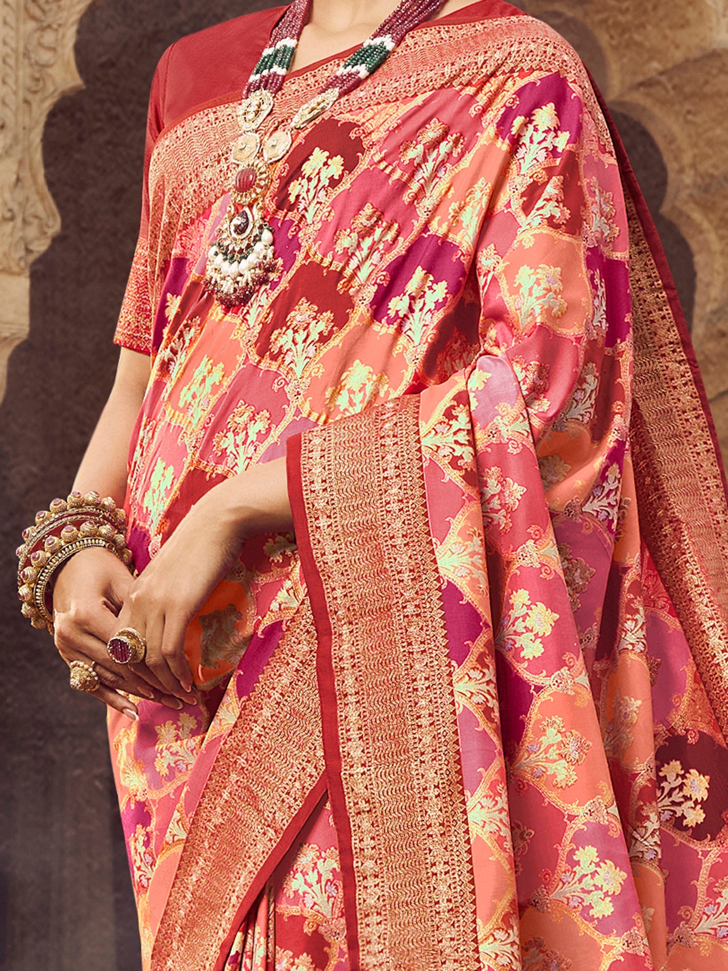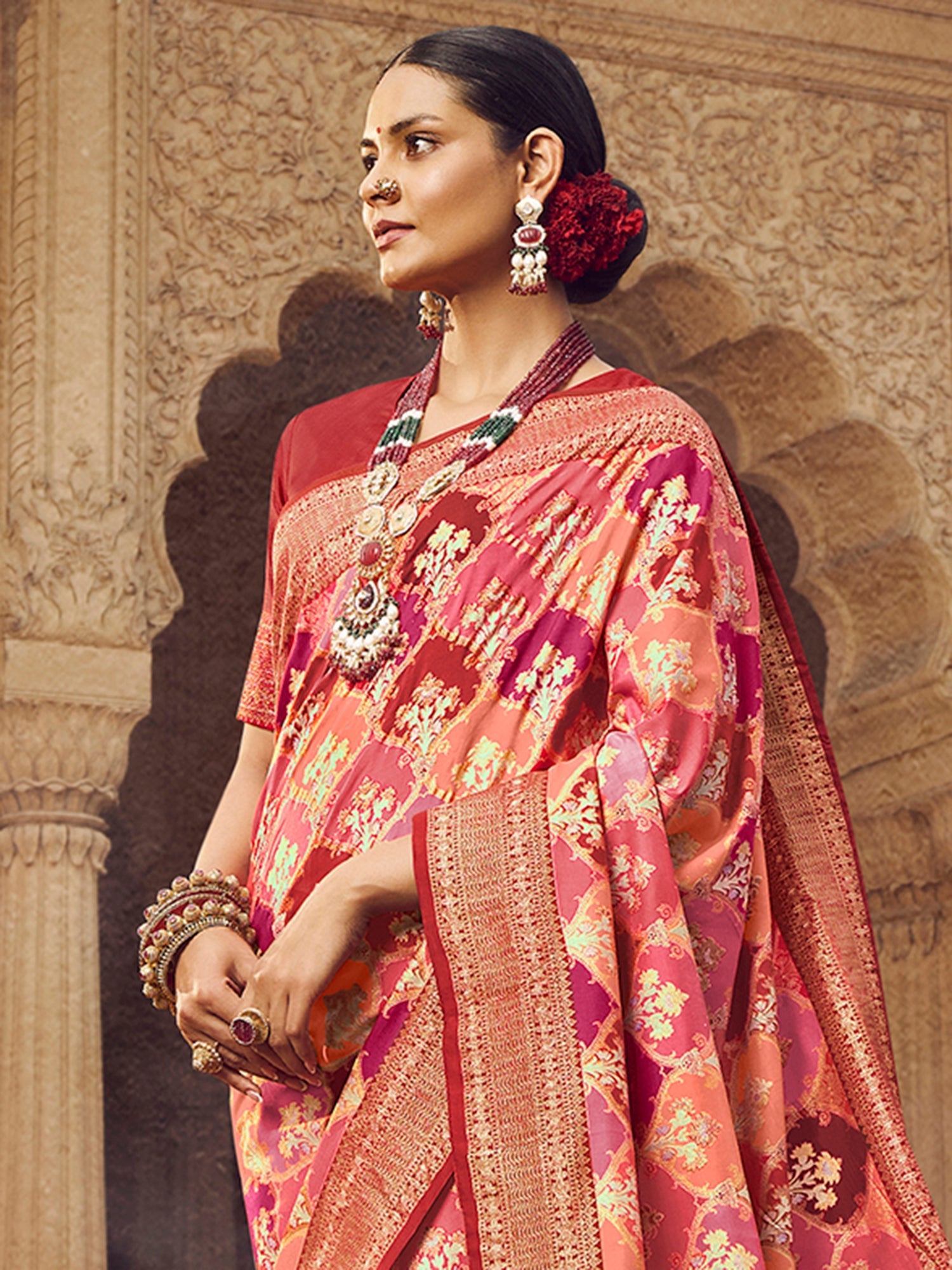 This saree is made from Silk Blend and is Peach in color. Our Ethnic Sarees comes With Blouse Piece, Which can be Stitched according to Your Taste and Preference. This Saree is Crafted by Skill Craftsmen without Compromising on its Quality. With This Beautiful Design and Fabric, This Saree will fetch You Oodles of Compliments and Praise. saree fit size is 5.5 mtr saree & 0.8 mtr blouse, Free Size |.