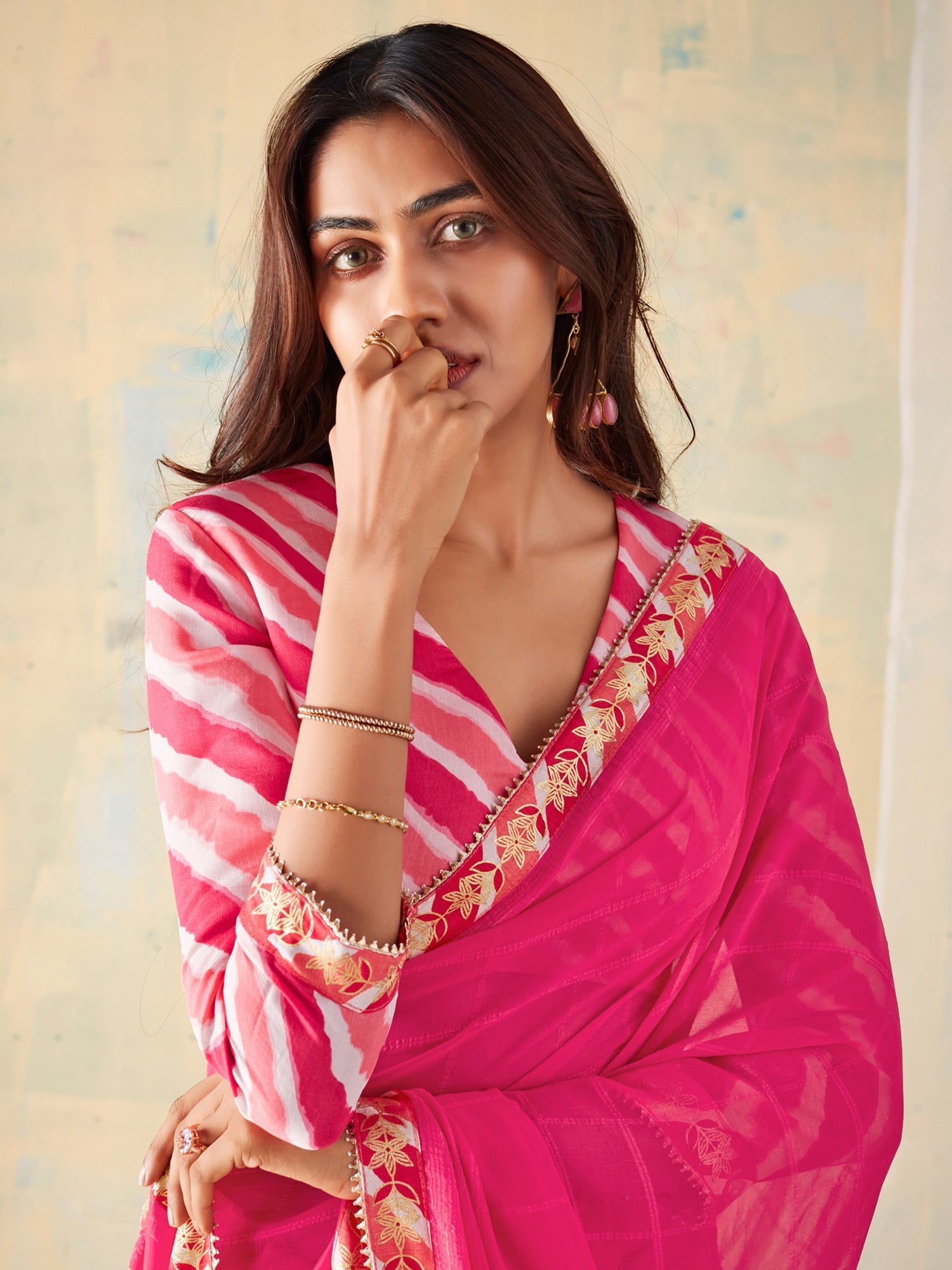 This saree is made from Georgette and is Pink in color. Our Ethnic Sarees comes With Blouse Piece, Which can be Stitched according to Your Taste and Preference. This Saree is Crafted by Skill Craftsmen without Compromising on its Quality. With This Beautiful Design and Fabric, This Saree will fetch You Oodles of Compliments and Praise. saree fit size is 5.5 mtr saree & 0.8 mtr blouse, Free Size |.