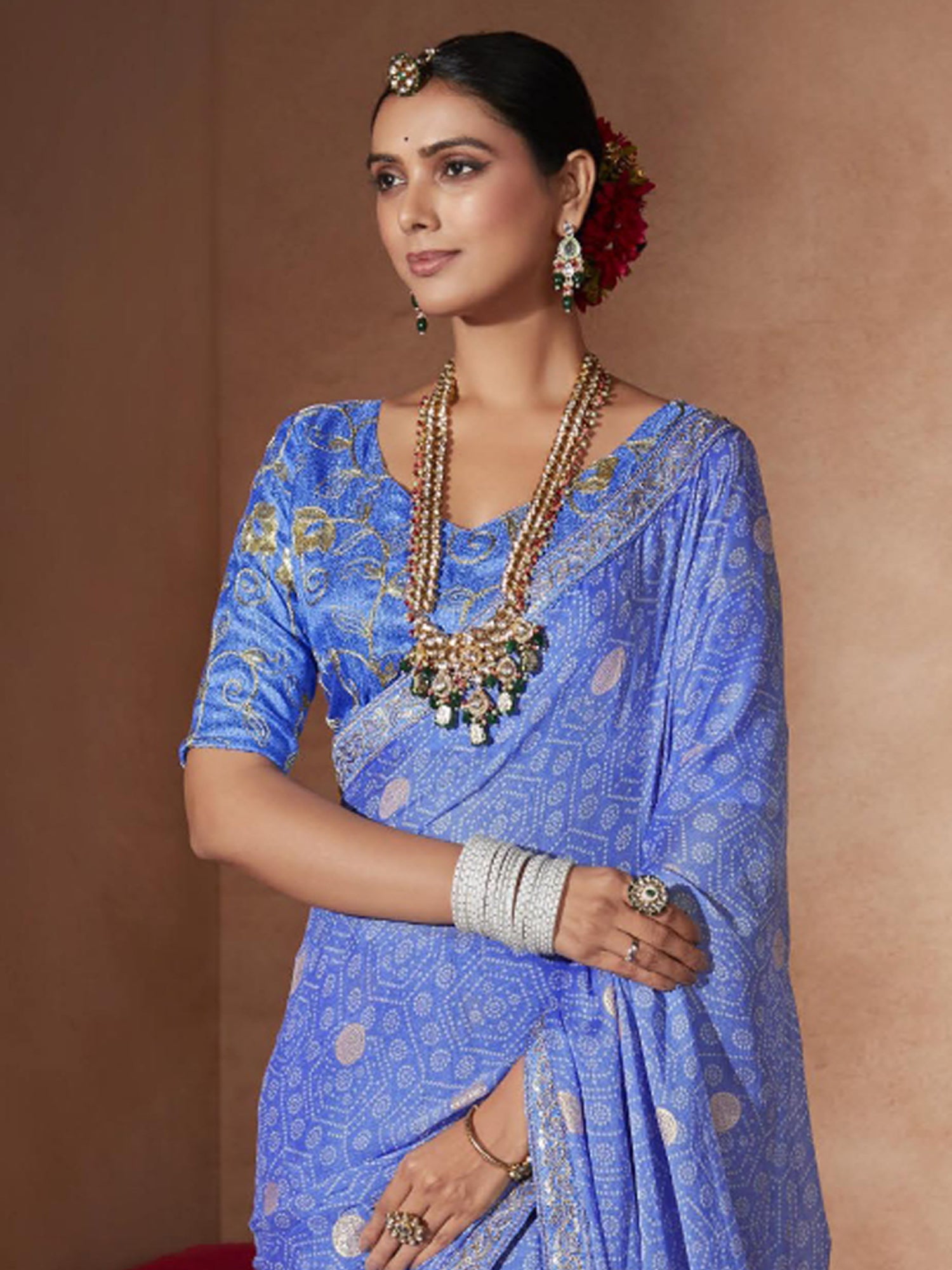 This saree is made from Chiffon and is Blue in color. Our Ethnic Sarees comes With Blouse Piece, Which can be Stitched according to Your Taste and Preference. This Saree is Crafted by Skill Craftsmen without Compromising on its Quality. With This Beautiful Design and Fabric, This Saree will fetch You Oodles of Compliments and Praise. saree fit size is 5.5 mtr saree & 0.8 mtr blouse, Free Size |.