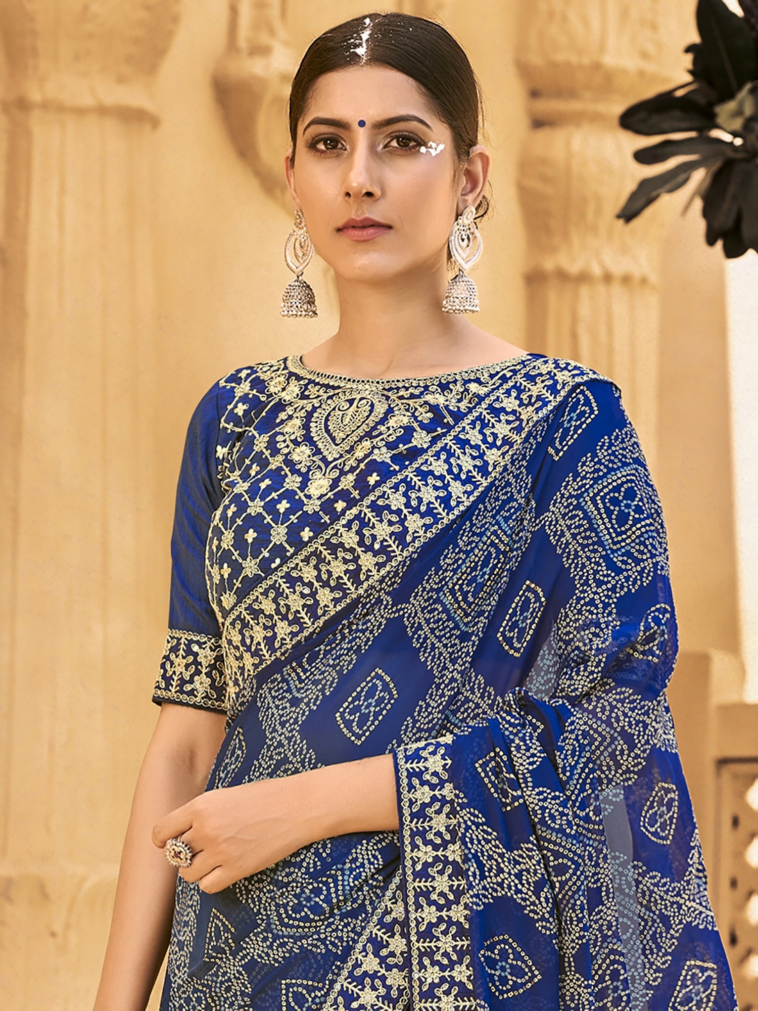 This saree is made from Georgette and is Blue in color. Our Ethnic Sarees comes With Blouse Piece, Which can be Stitched according to Your Taste and Preference. This Saree is Crafted by Skill Craftsmen without Compromising on its Quality. With This Beautiful Design and Fabric, This Saree will fetch You Oodles of Compliments and Praise. saree fit size is 5.5 mtr saree & 0.8 mtr blouse, Free Size |.
