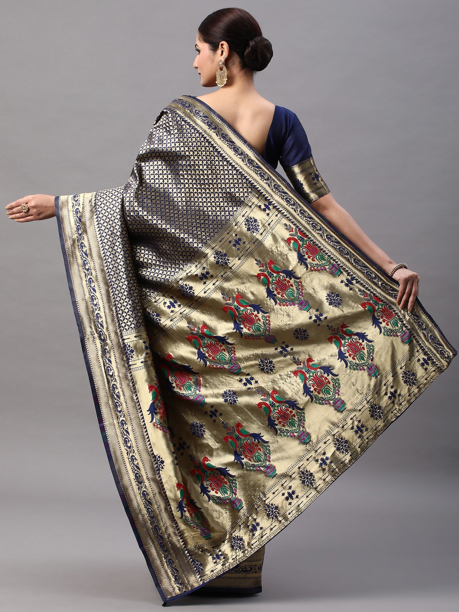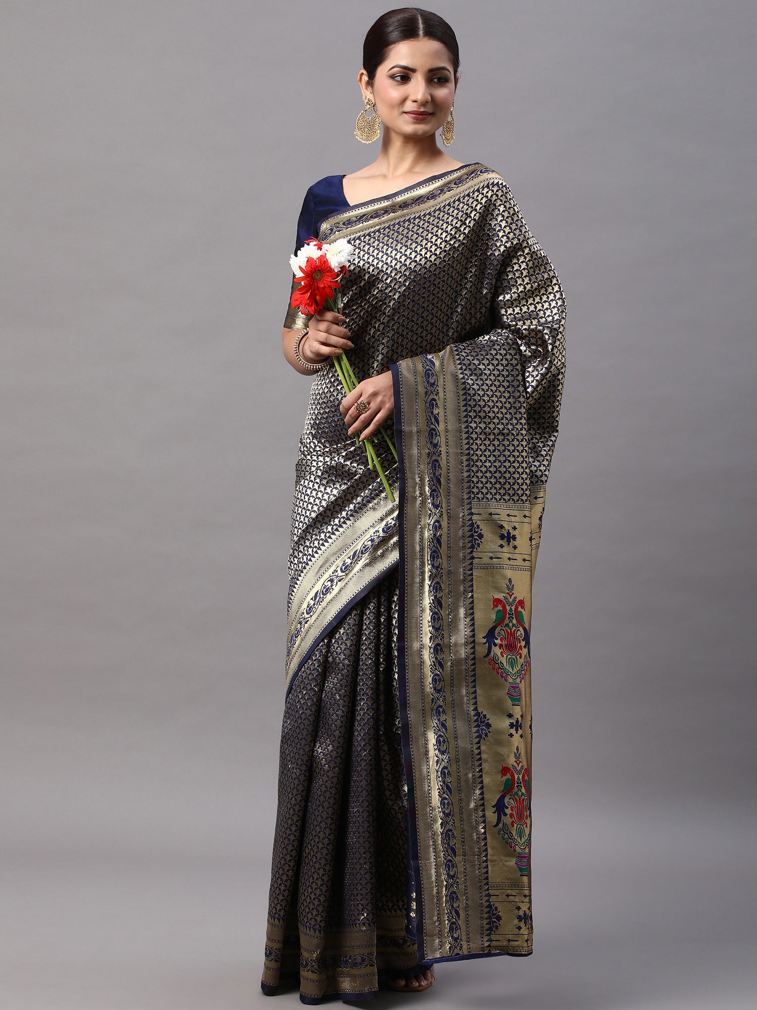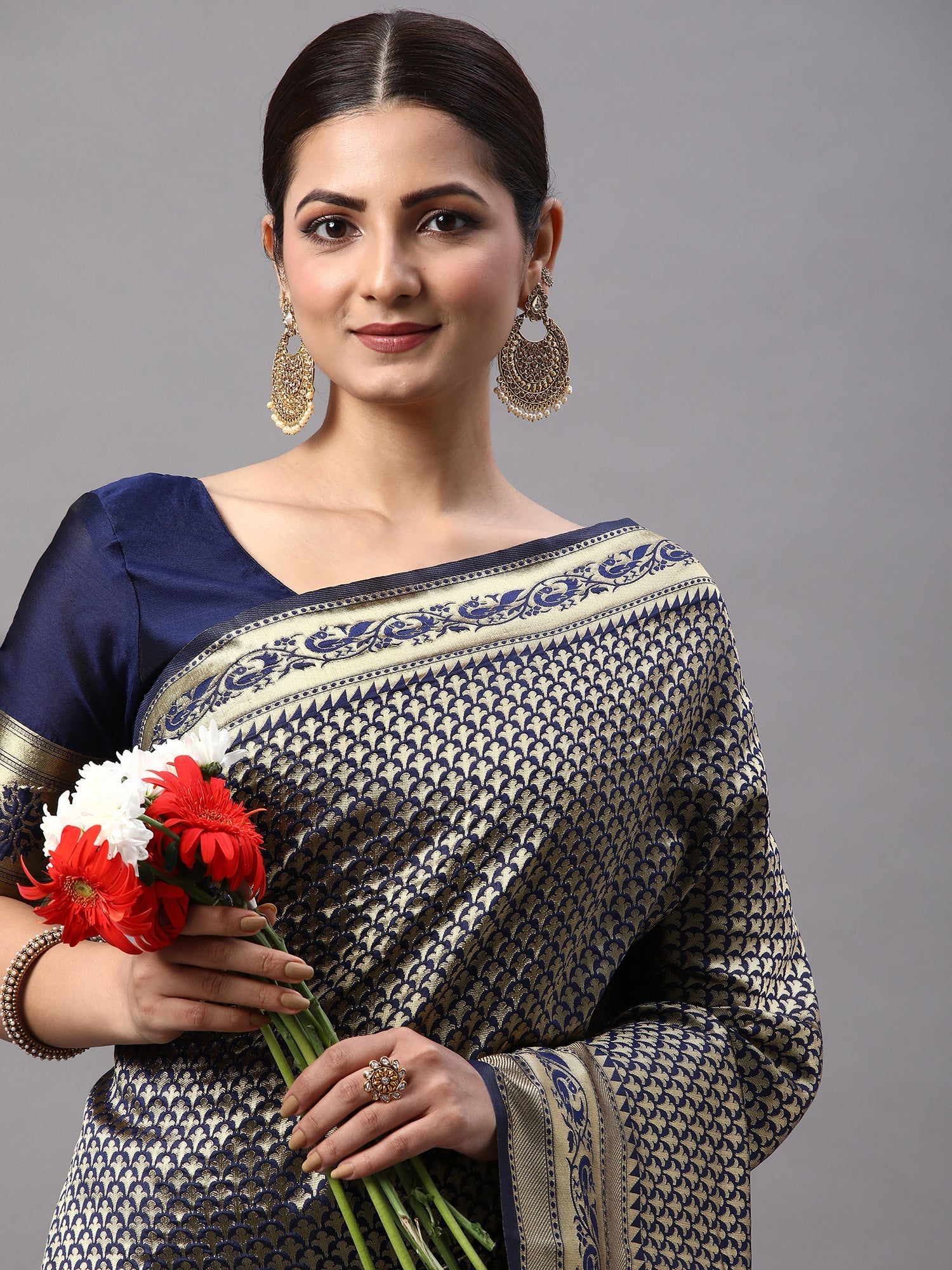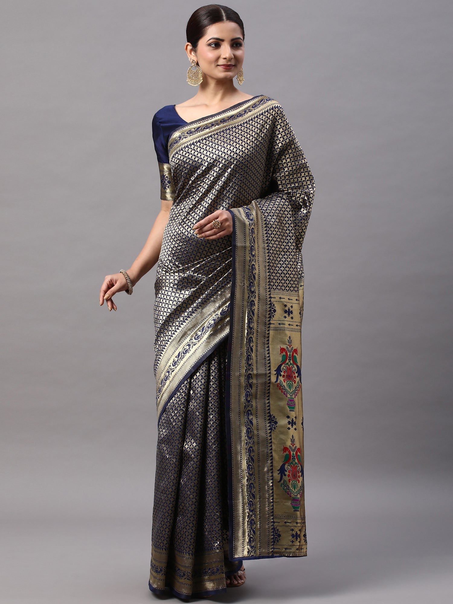 This saree is made from Silk Blend and is Navy Blue in color. Our Ethnic Sarees comes With Blouse Piece, Which can be Stitched according to Your Taste and Preference. This Saree is Crafted by Skill Craftsmen without Compromising on its Quality. With This Beautiful Design and Fabric, This Saree will fetch You Oodles of Compliments and Praise. saree fit size is 5.5 mtr saree & 0.8 mtr blouse, Free Size |.