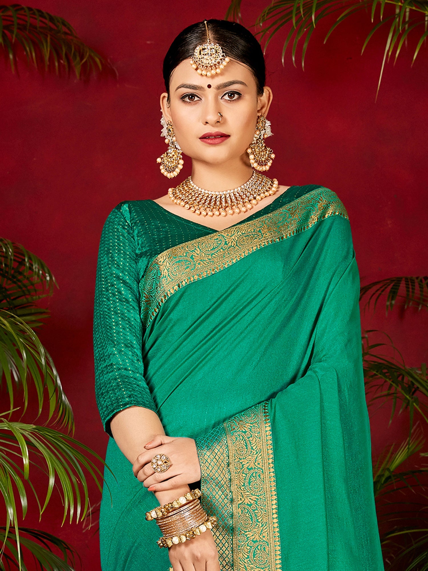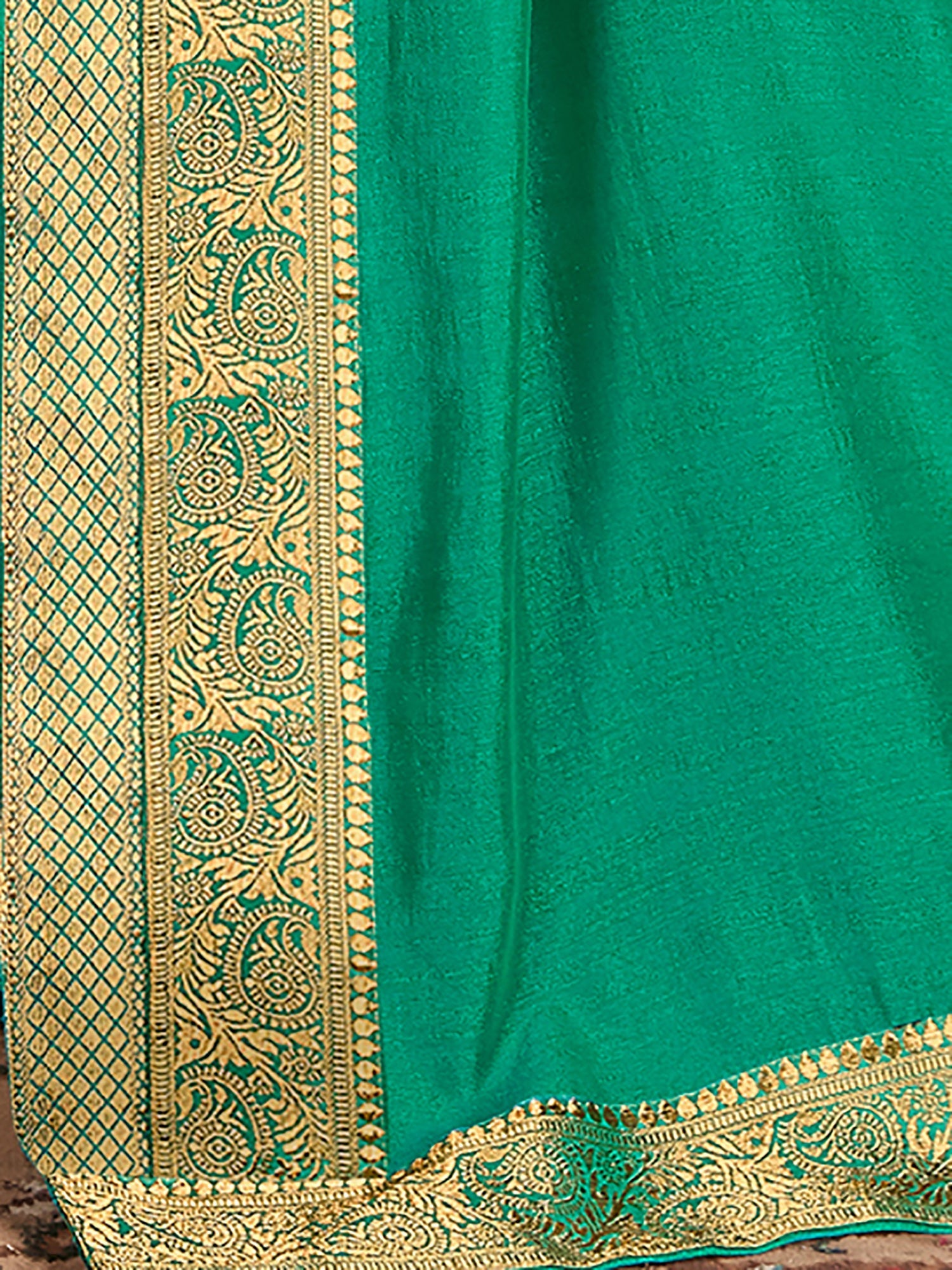 This saree is made from Vichitra Silk and is Sea Green in color. Our Ethnic Sarees comes With Blouse Piece, Which can be Stitched according to Your Taste and Preference. This Saree is Crafted by Skill Craftsmen without Compromising on its Quality. With This Beautiful Design and Fabric, This Saree will fetch You Oodles of Compliments and Praise. saree fit size is 5.5 mtr saree & 0.8 mtr blouse, Free Size |.