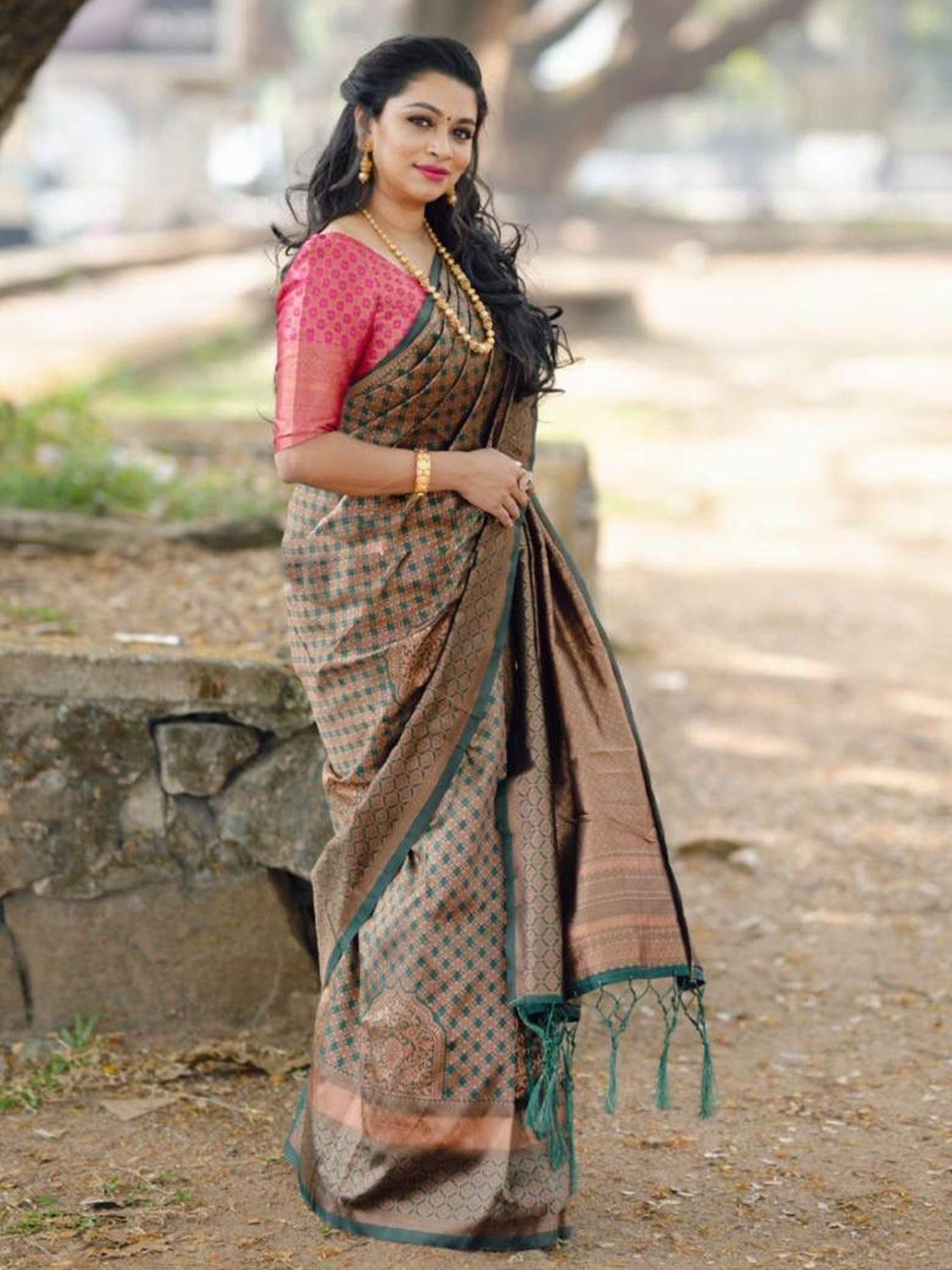 This saree is made from Silk Blend and is Green in color. Our Ethnic Sarees comes With Blouse Piece, Which can be Stitched according to Your Taste and Preference. This Saree is Crafted by Skill Craftsmen without Compromising on its Quality. With This Beautiful Design and Fabric, This Saree will fetch You Oodles of Compliments and Praise. saree fit size is 5.5 mtr saree & 0.8 mtr blouse, Free Size |.