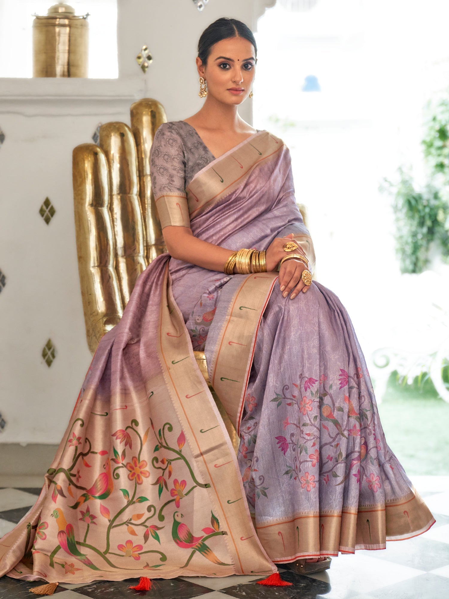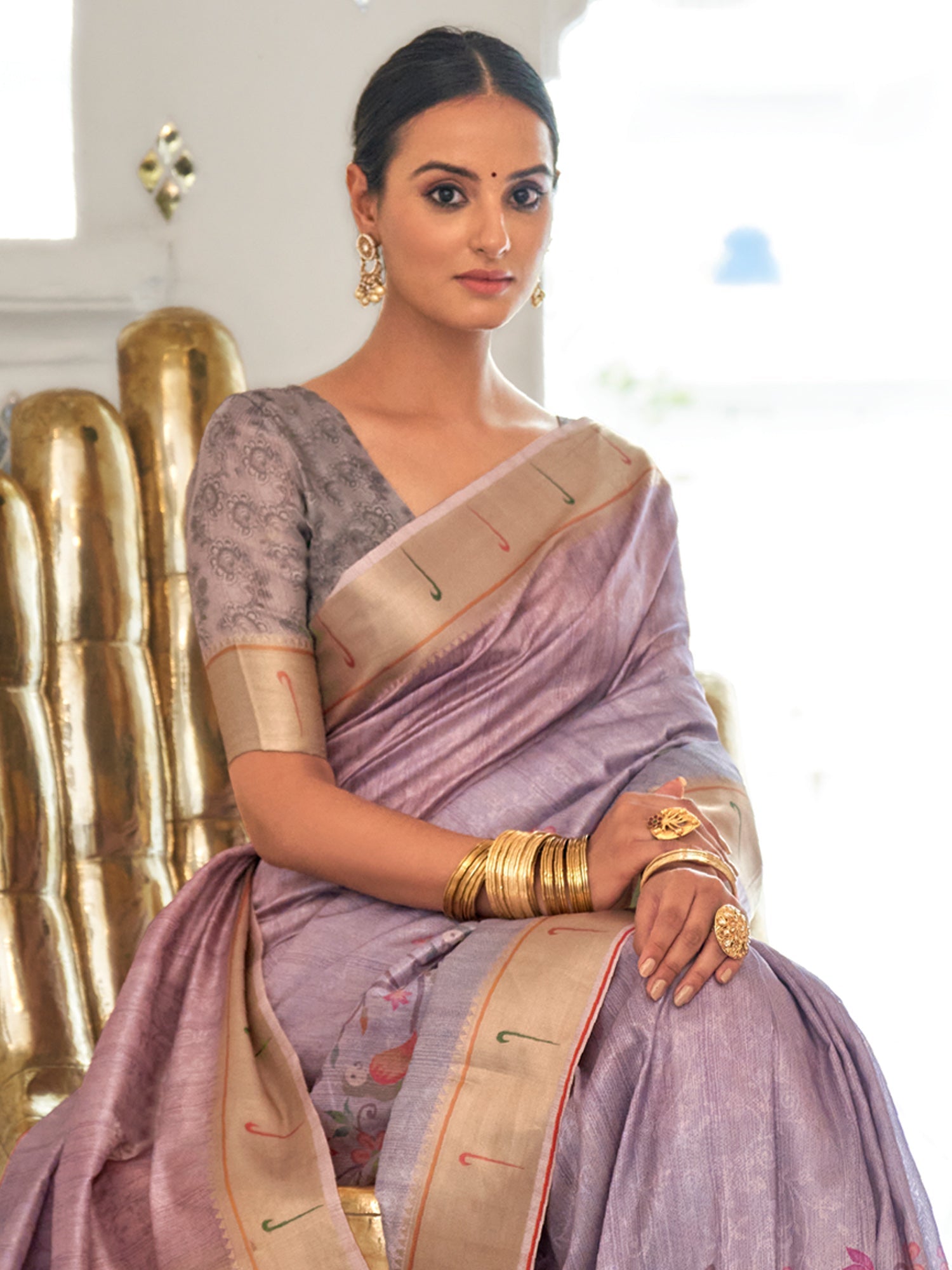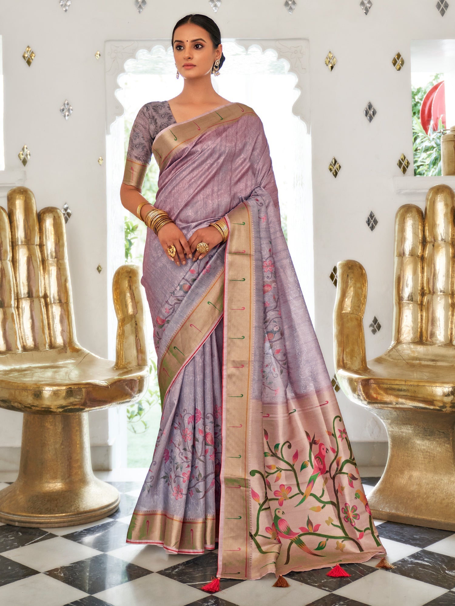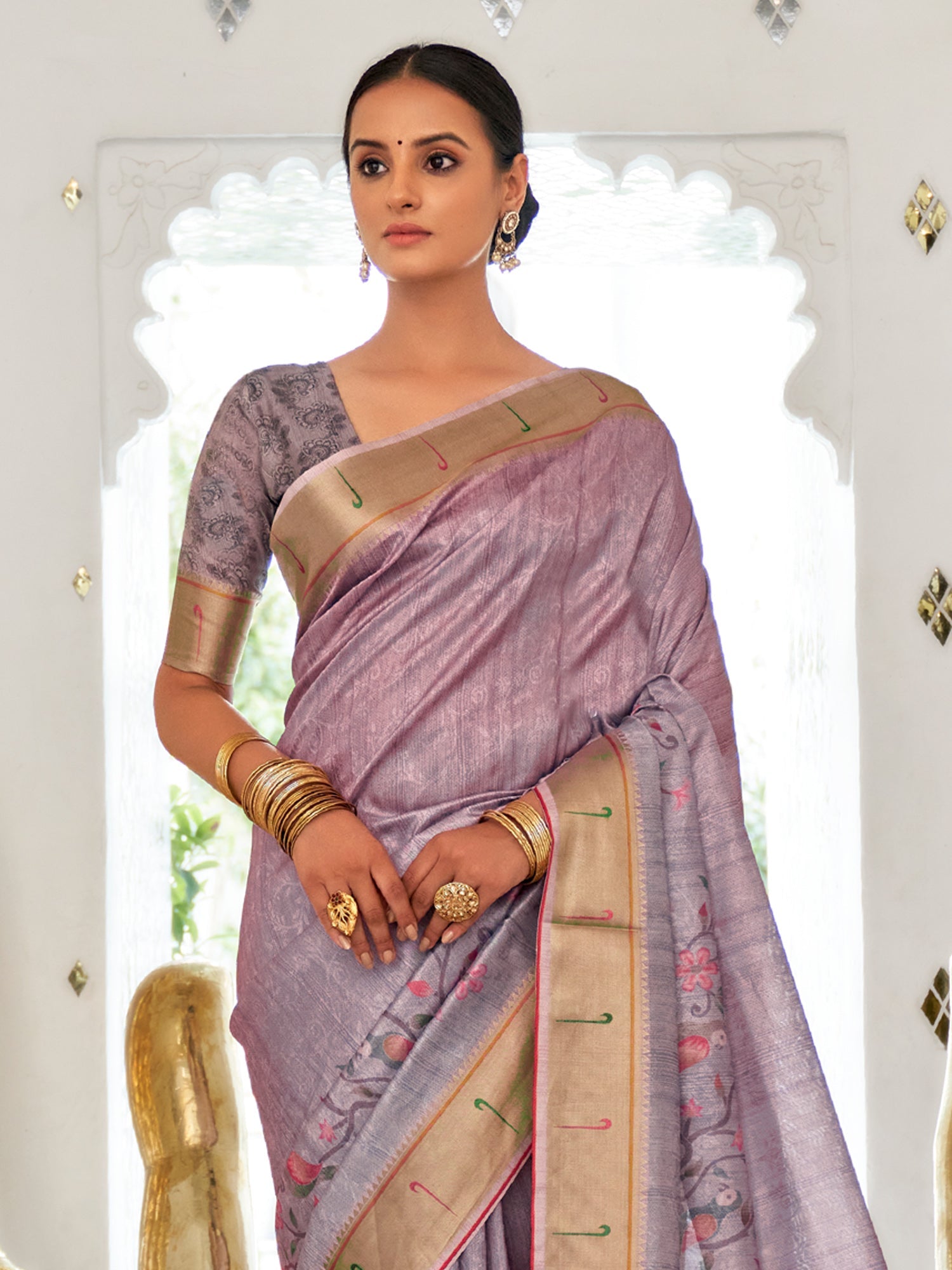 This saree is made from Silk Blend and is Lavendar in color. Our Ethnic Sarees comes With Blouse Piece, Which can be Stitched according to Your Taste and Preference. This Saree is Crafted by Skill Craftsmen without Compromising on its Quality. With This Beautiful Design and Fabric, This Saree will fetch You Oodles of Compliments and Praise. saree fit size is 5.5 mtr saree & 0.8 mtr blouse, Free Size |.