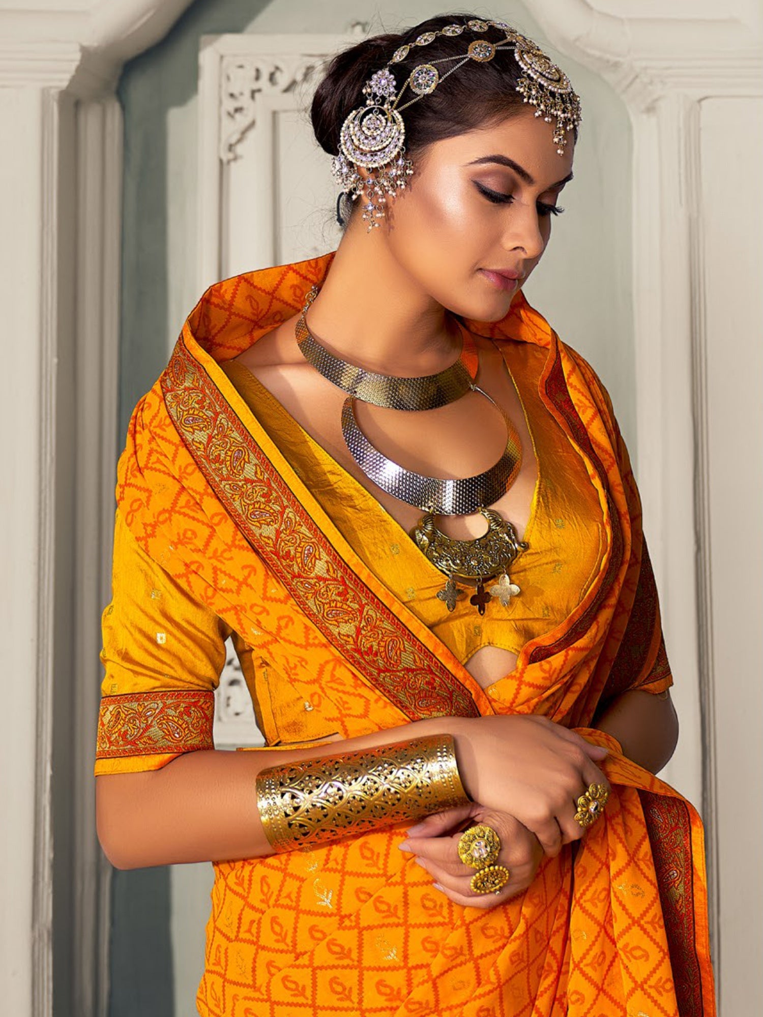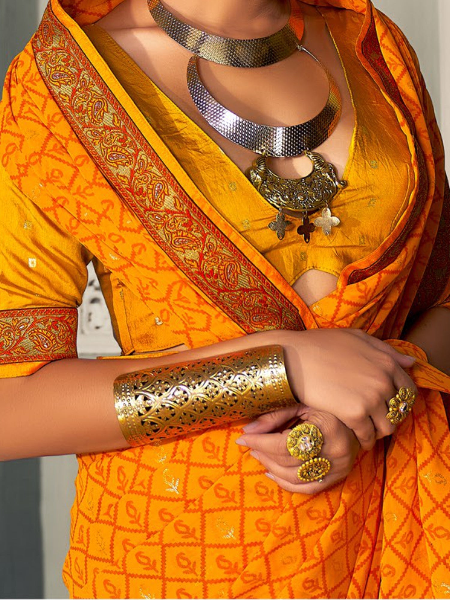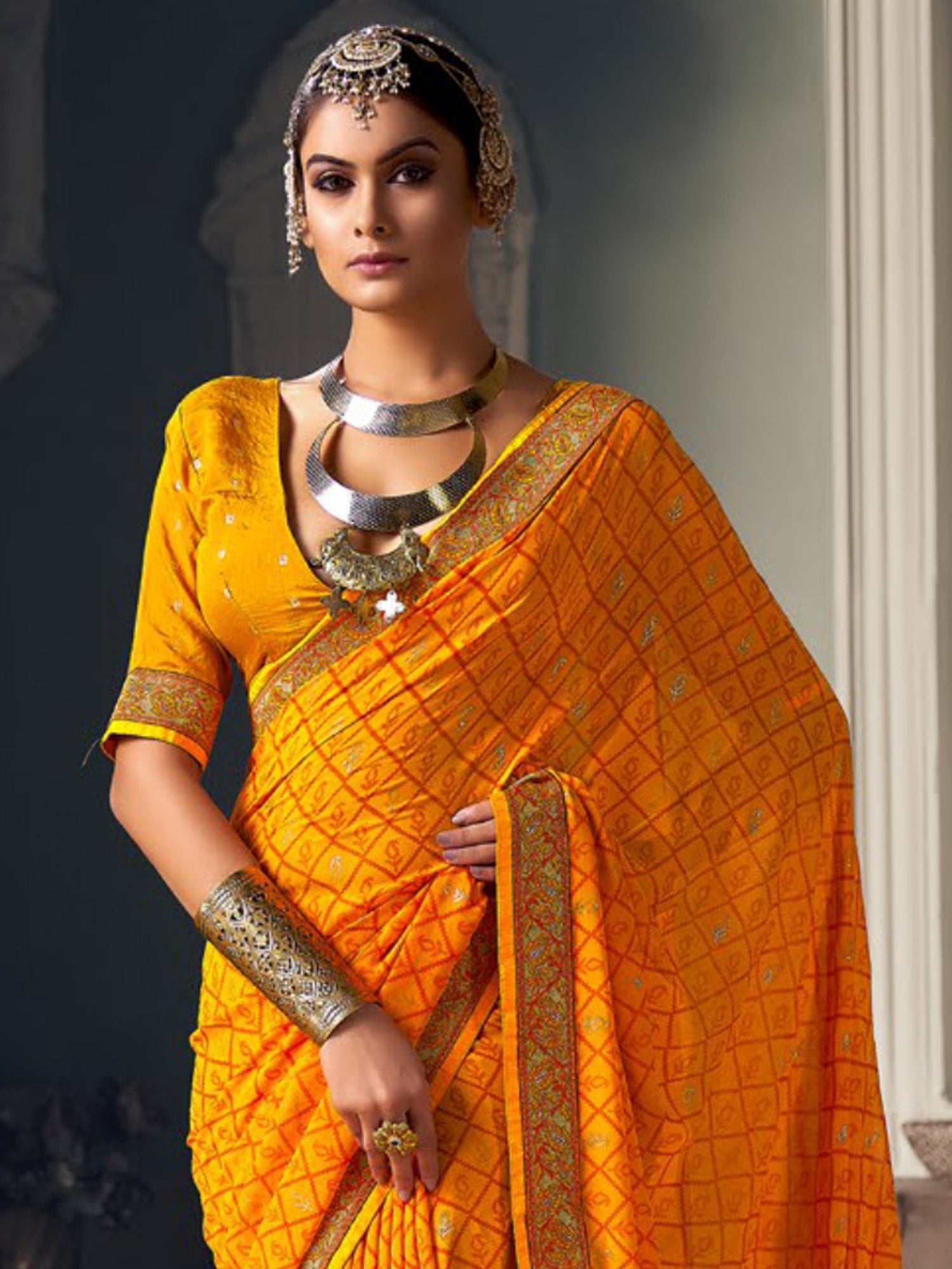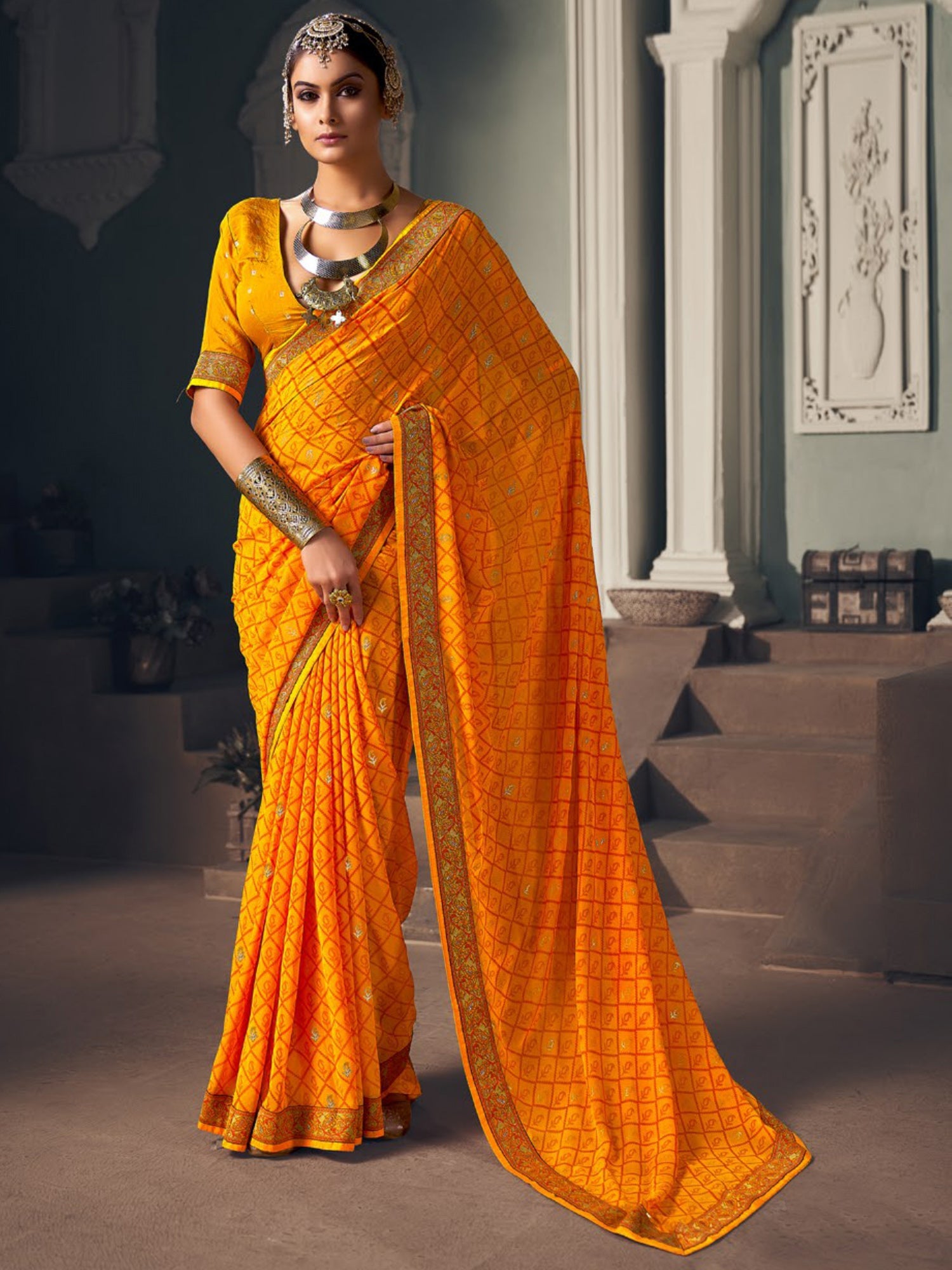 This saree is made from Georgette and is Yellow in color. Our Ethnic Sarees comes With Blouse Piece, Which can be Stitched according to Your Taste and Preference. This Saree is Crafted by Skill Craftsmen without Compromising on its Quality. With This Beautiful Design and Fabric, This Saree will fetch You Oodles of Compliments and Praise. saree fit size is 5.5 mtr saree & 0.8 mtr blouse, Free Size |.